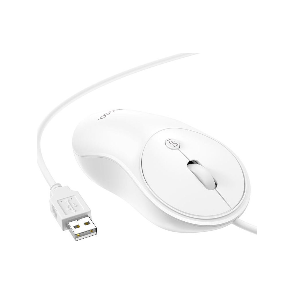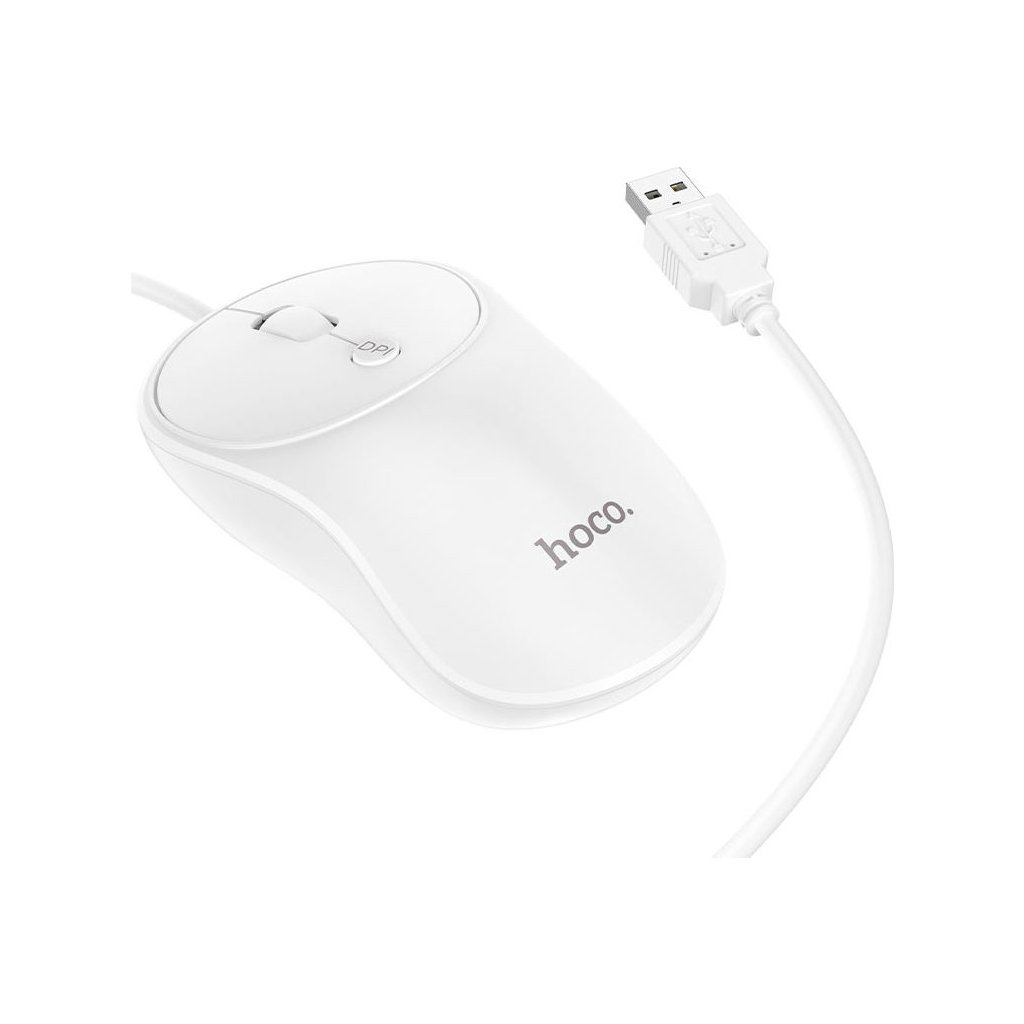 Myš Hoco GM13 je levným a elegantním příslušenstvím s připojením přes kabel. Hodí se ke všem počítačům a notebookům, které disponují klasickým USB portem. Využijete i rychlý přepínač DPI a 4D kolečko.