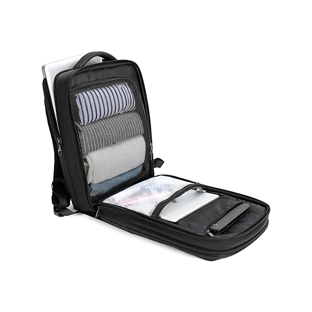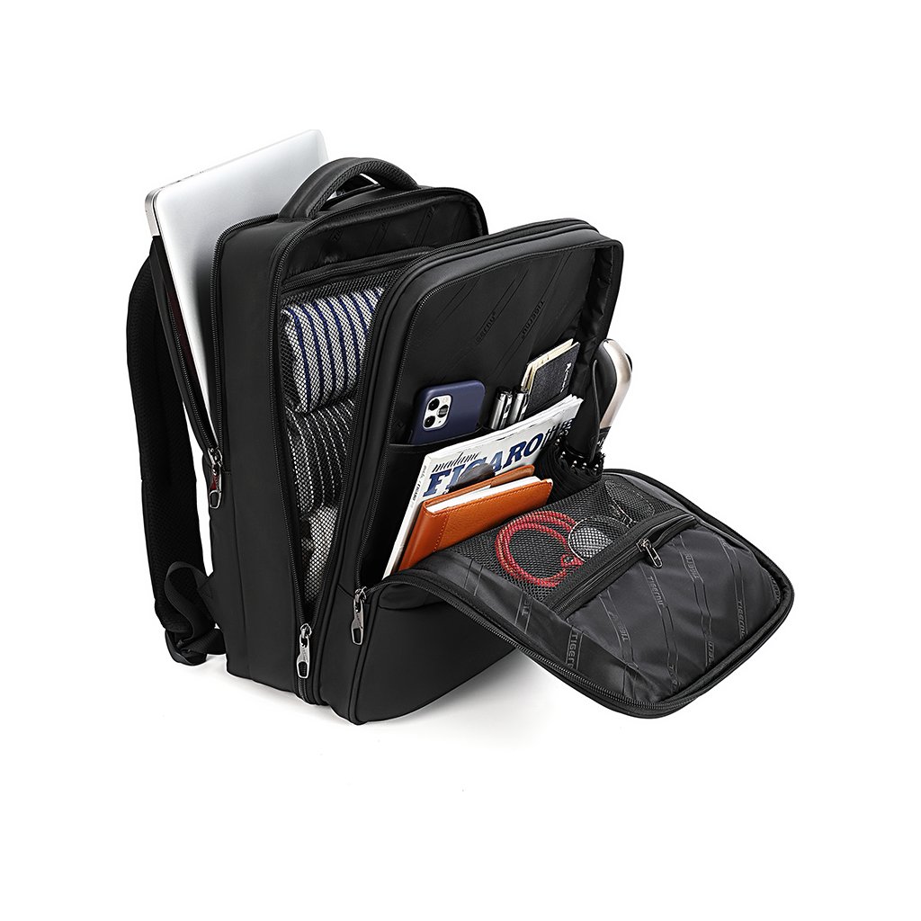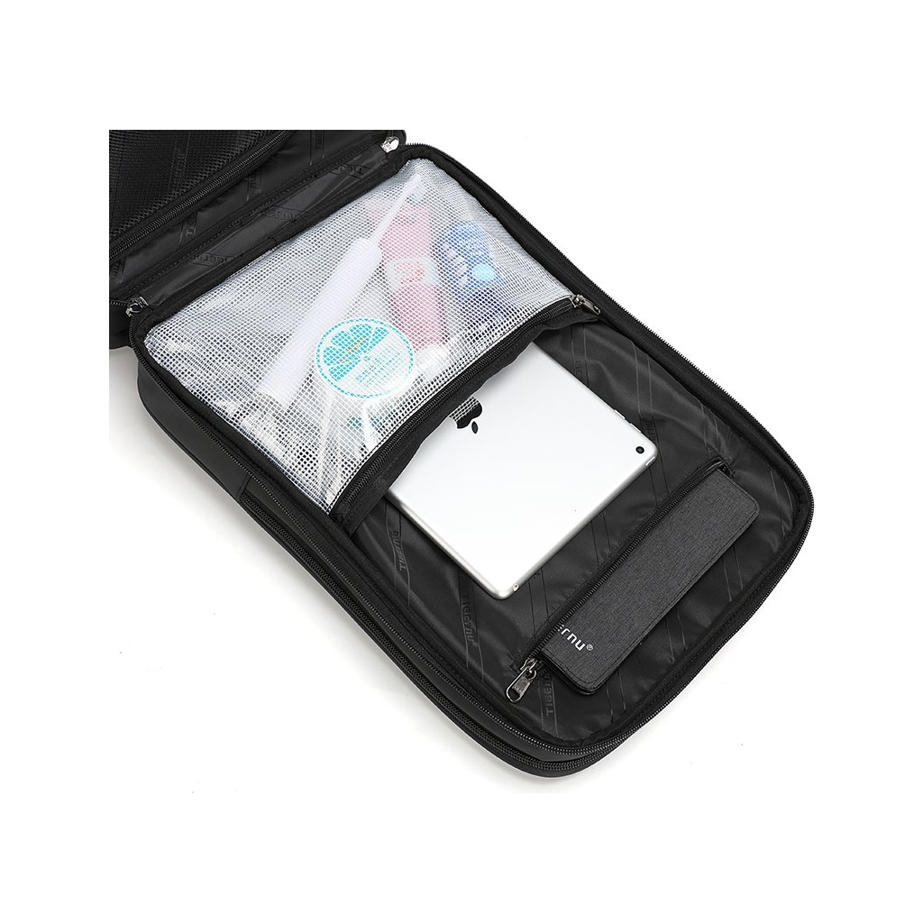 Batoh na notebook Tigernu je skvělou možností, jak si uložit na cesty všechny své věci. Počítač je bezpečně umístěn do zadní části batohu, takže ho nepoškrábe ostatní příslušenství. Před touto velkou kapsou je další menší, a ta pojme spoustu středních doplňků nebo třeba i několik kusů vašeho oblečení. K tomu máte k dispozici síťované přihrádky pro uložení třeba tabletu, psacích potřeb nebo hygieny. Vpředu je pak ještě další kapsa. Ideální pro malé doplňky jako jsou například kabely. Před všemi kapsami je ale ještě malá přihrádka na zip. Poslouží dobře na cestovní doklady a všechny věci, které chcete mít hned a okamžitě na dosah.