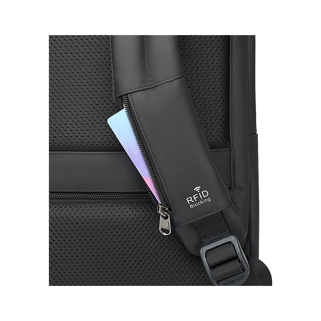 Cestovní batoh nabídne kromě obyčejných kapes a přihrádek také skrytou zadní kapsu. Ta je při nasazeném batohu na zádech pro všechny nenechavce neviditelná. Podobně nenápadně působí poutko na ramenním popruhu, kam lze zaháknout třeba brýle. Druhý popruh zase má na sobě kapsu s RFID stíněním, takže bezpečně do ní uložíte platební kartu, kterou nebude možné nikterak oskenovat.