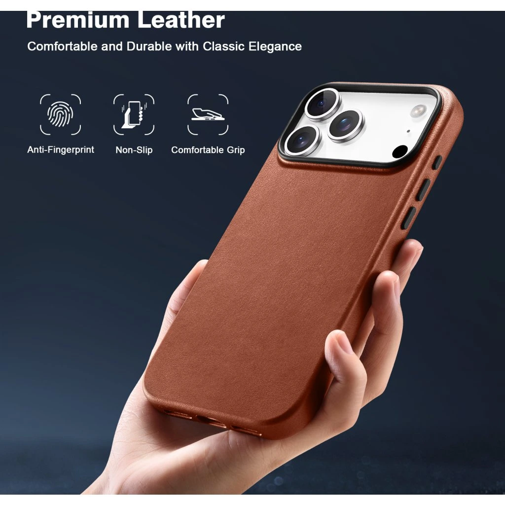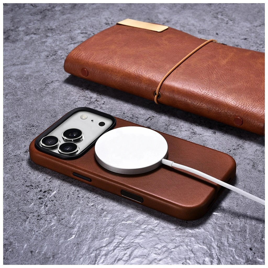 Kožený obal na iPhone 17 Pro MAX - iCarer, OilWax MagSafe Brown