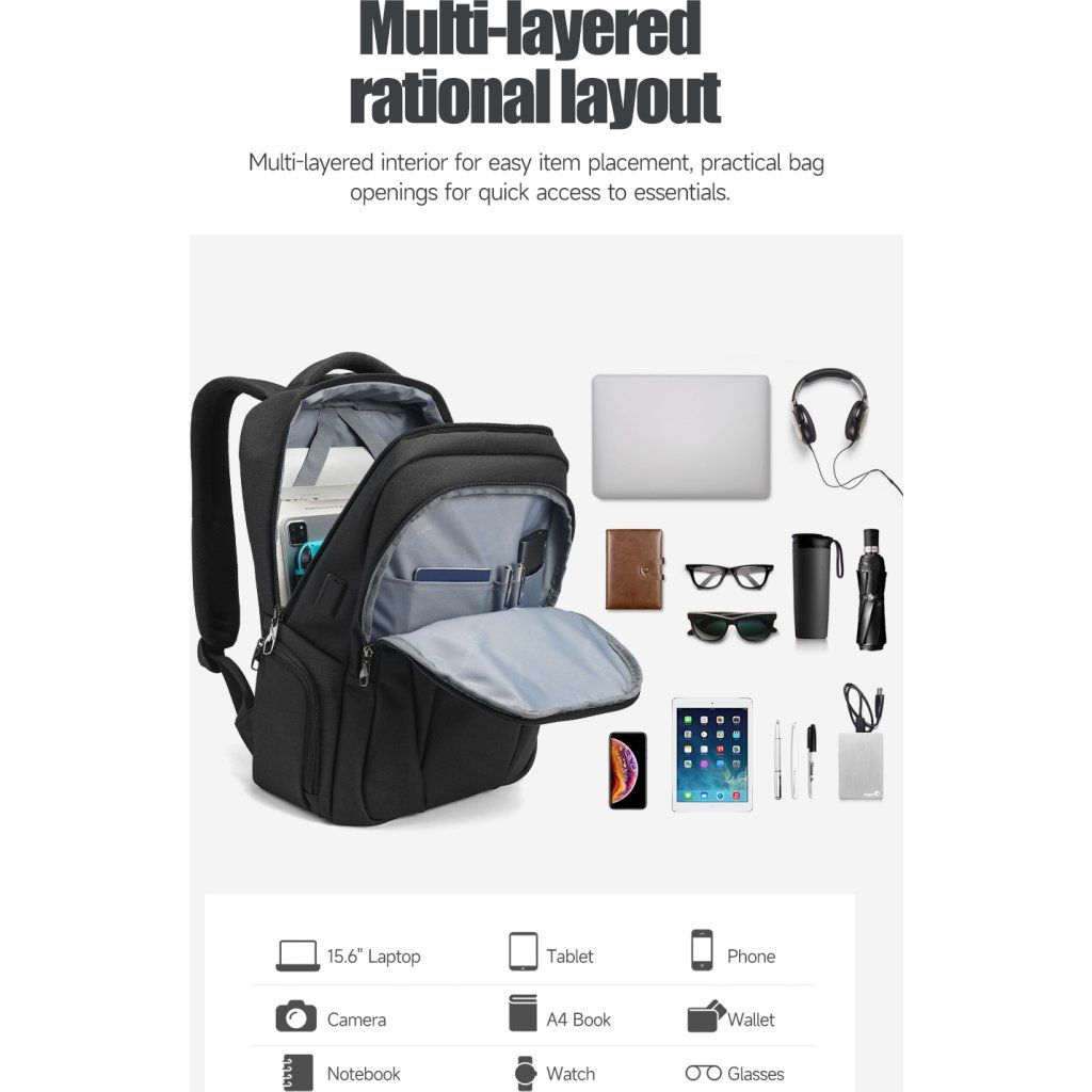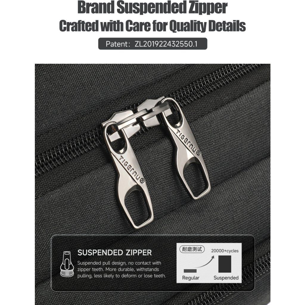 Batoh Tigernu je vynikající volbou, jak si uložit na cesty všechny své věci. Notebook je bezpečně umístěn v zadní části batohu v největší kapse. K němu můžete přihodit velká sluchátka, něco na čtení a další věci, které se vám budou na cestu hodit. Vpředu je pak menší kapsa, která má v sobě několik přihrádek a je tak vhodná pro uložení psacích potřeb, cestovních dokladů a jiných drobnějších věcí. Pod ní je ještě jedna menší, kam umístíte třeba menší tablet nebo telefon.