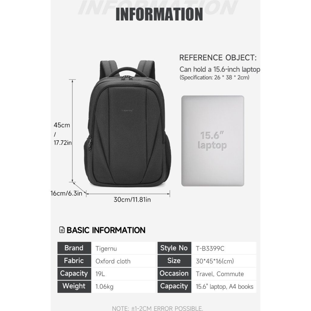 Městský batoh Tigernu T-B3399C vypadá na první pohled jako typická školní taška, ale můžete ho využívat i na cesty nebo do práce. Pojme dokonce i velký 15,6palcový notebook a díky šikovnému rozdělení přihrádek a kapes společně s počítačem přenesete i spoustu doplňků a příslušenství.