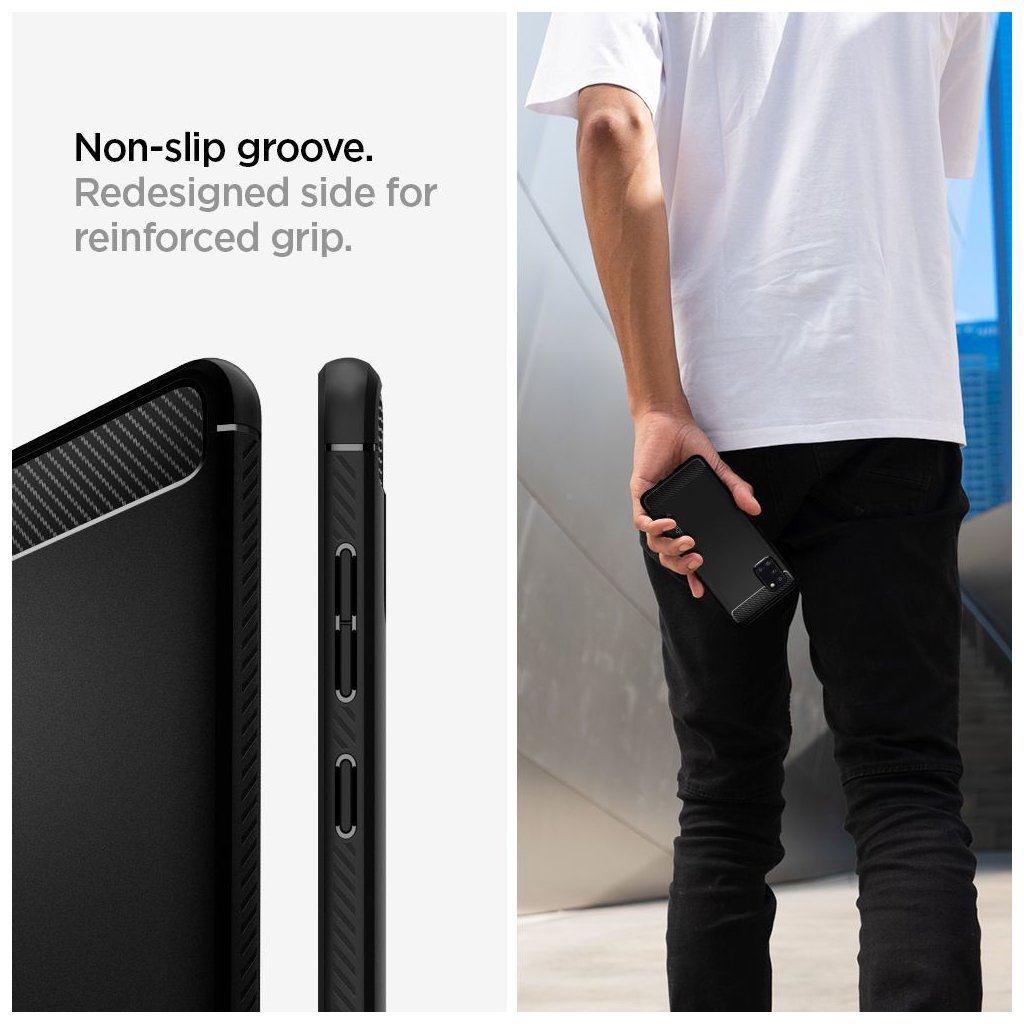 Ochranný kryt Spigen Rugged Armor pro Samsung Galaxy A31 je odolný a zároveň elegantní obal, který poskytuje vynikající ochranu proti nárazům, pádům a škrábancům díky své pevné konstrukci s flexibilním TPU rámem. Kryt má moderní design s texturovaným povrchem, který zajišťuje lepší úchop a minimalizuje sklouznutí, a přesné výřezy umožňují snadný přístup ke všem tlačítkům, portům a funkcím telefonu. Ideální volba pro uživatele, kteří chtějí kombinaci ochrany, odolnosti a stylu pro svůj Samsung Galaxy A31.