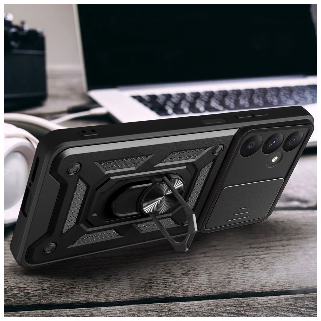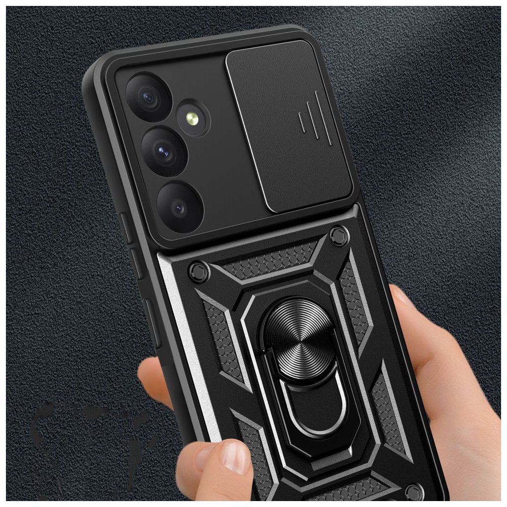 Ochranný kryt Tech-Protect CamShield Black pro Samsung Galaxy A55 5G nabízí efektivní ochranu s integrovanou krycí klapkou na fotoaparát, která chrání čočky před prachem, škrábanci a nárazy. Vyrobený z kvalitních odolných materiálů, kryt zajišťuje pevné uchycení a odolnost při každodenním používání, zatímco jeho elegantní černý vzhled dodává zařízení moderní a stylový vzhled. Přesné výřezy umožňují snadný přístup ke všem tlačítkům a portům, aniž by bylo nutné kryt sundávat, což kombinuje ochranu s pohodlím a funkčností.