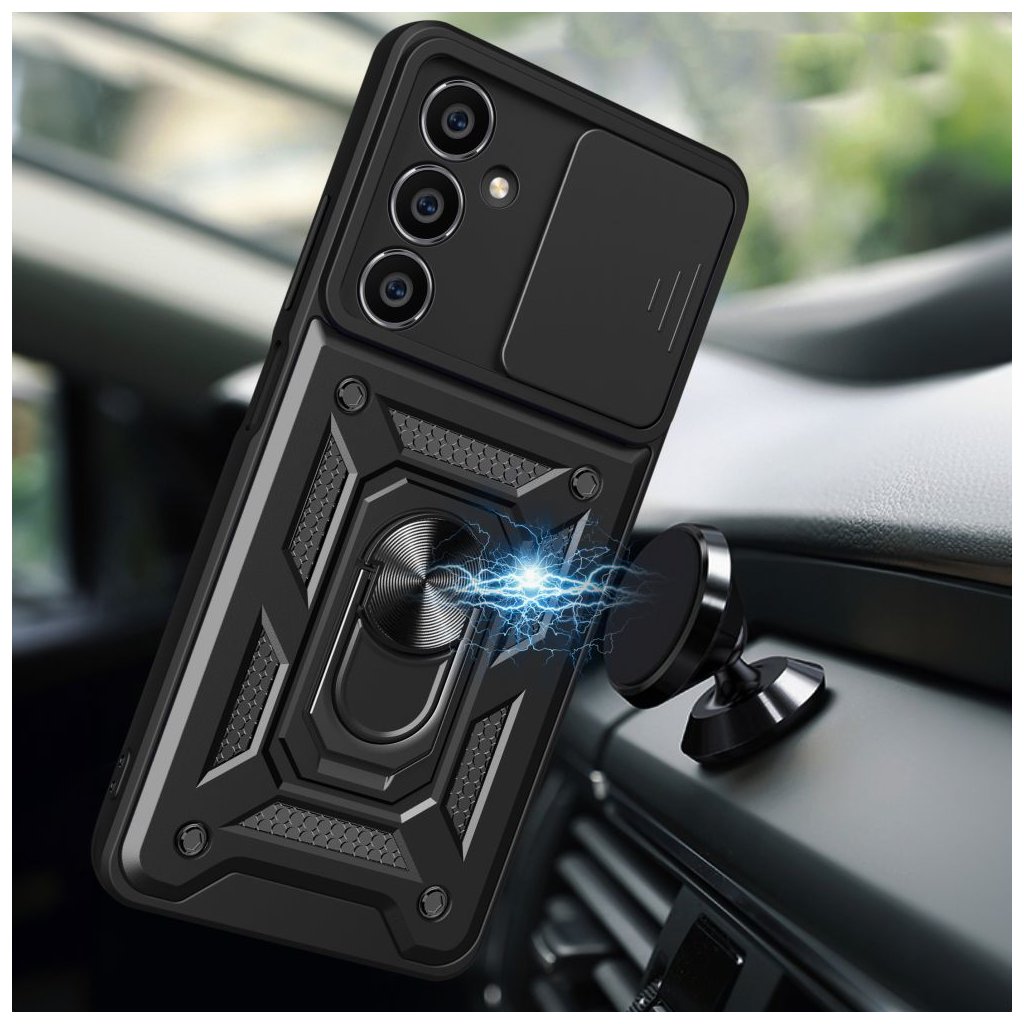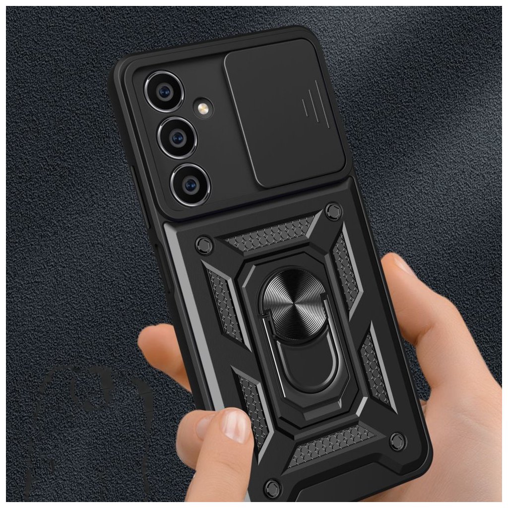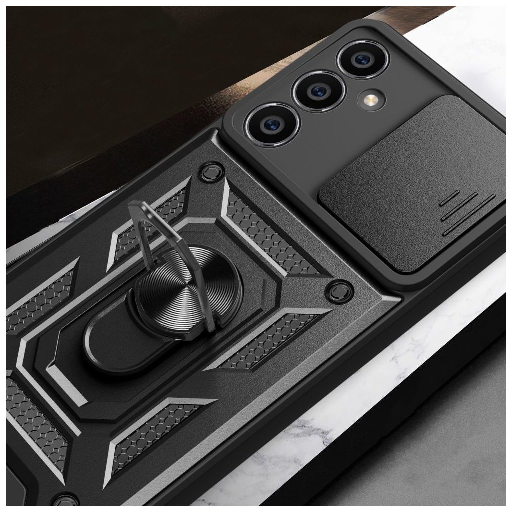 Ochranný kryt Tech-Protect CamShield Black pro Samsung Galaxy S23 FE nabízí spolehlivou ochranu s důrazem na zabezpečení fotoaparátu, díky integrované krycí klapce, která chrání čočky před prachem, škrábanci a nárazy. Vyrobený z odolného a pevných materiálů, kryt zajišťuje pevné uchycení a odolnost při každodenním používání, zatímco jeho elegantní černý design dodává telefonu moderní vzhled. Přesné výřezy umožňují snadný přístup ke všem tlačítkům, portům a funkcím, aniž by bylo nutné kryt sundávat, což z něj činí ideální volbu pro ty, kdo hledají kombinaci ochrany a stylu s důrazem na zabezpečení fotoaparátu.