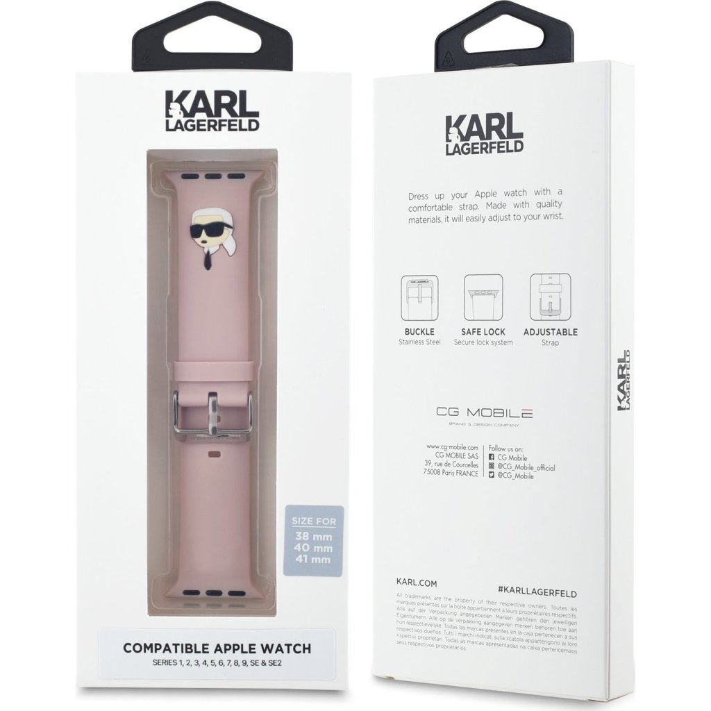 Řemínek pro Apple Watch 38mm / 40mm / 41mm / 42mm - Karl Lagerfeld, Karl Head NFT Pink