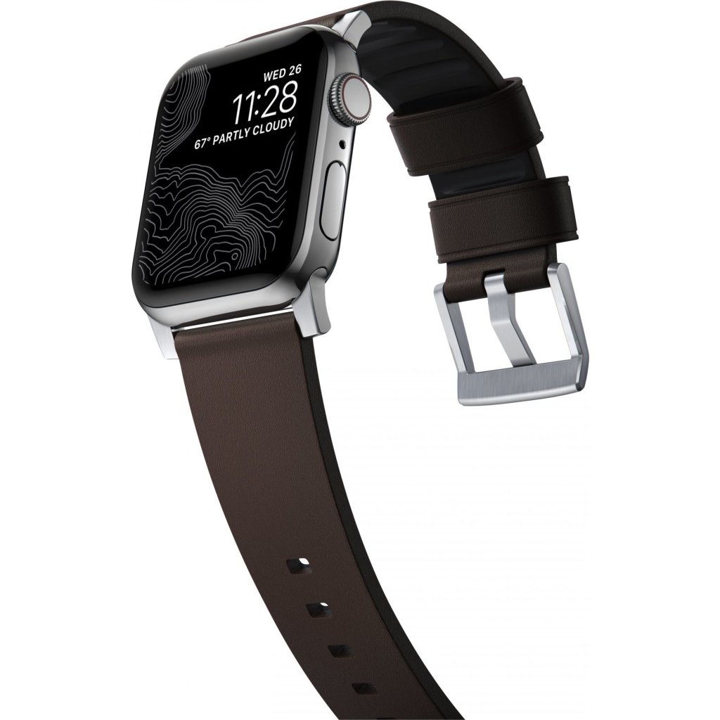 Kožený pásek / řemínek pro Apple Watch 44mm / 45mm / 46mm / 49mm - Nomad, Active Pro Brown Silver