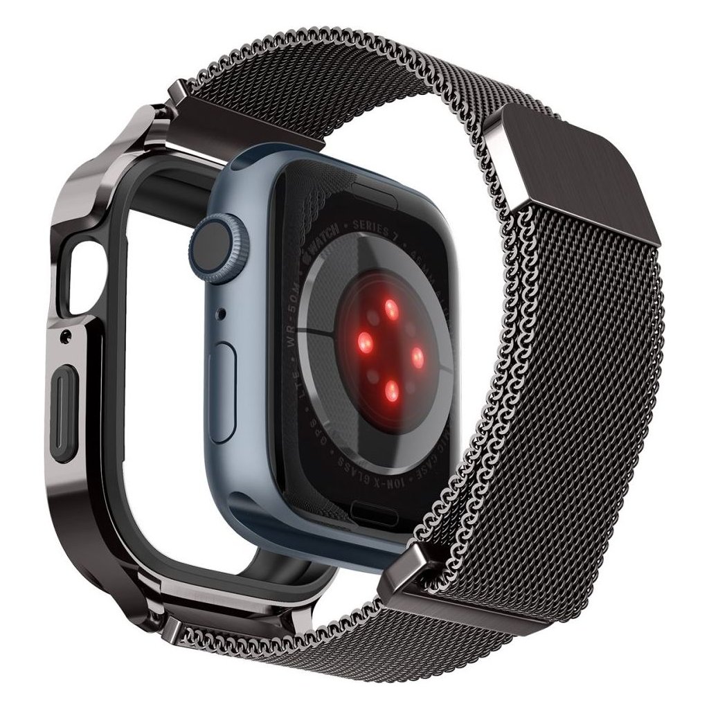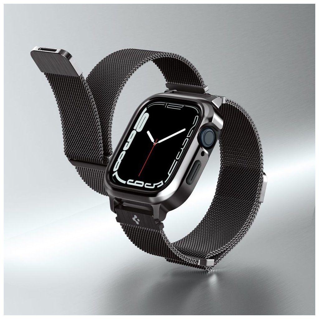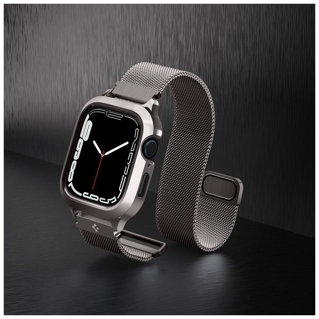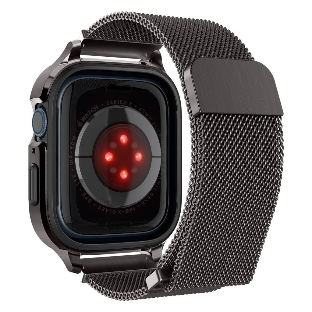 Řemínek s krytem pro Apple Watch 44mm / 45mm - Spigen, Metal Fit Pro Graphite
