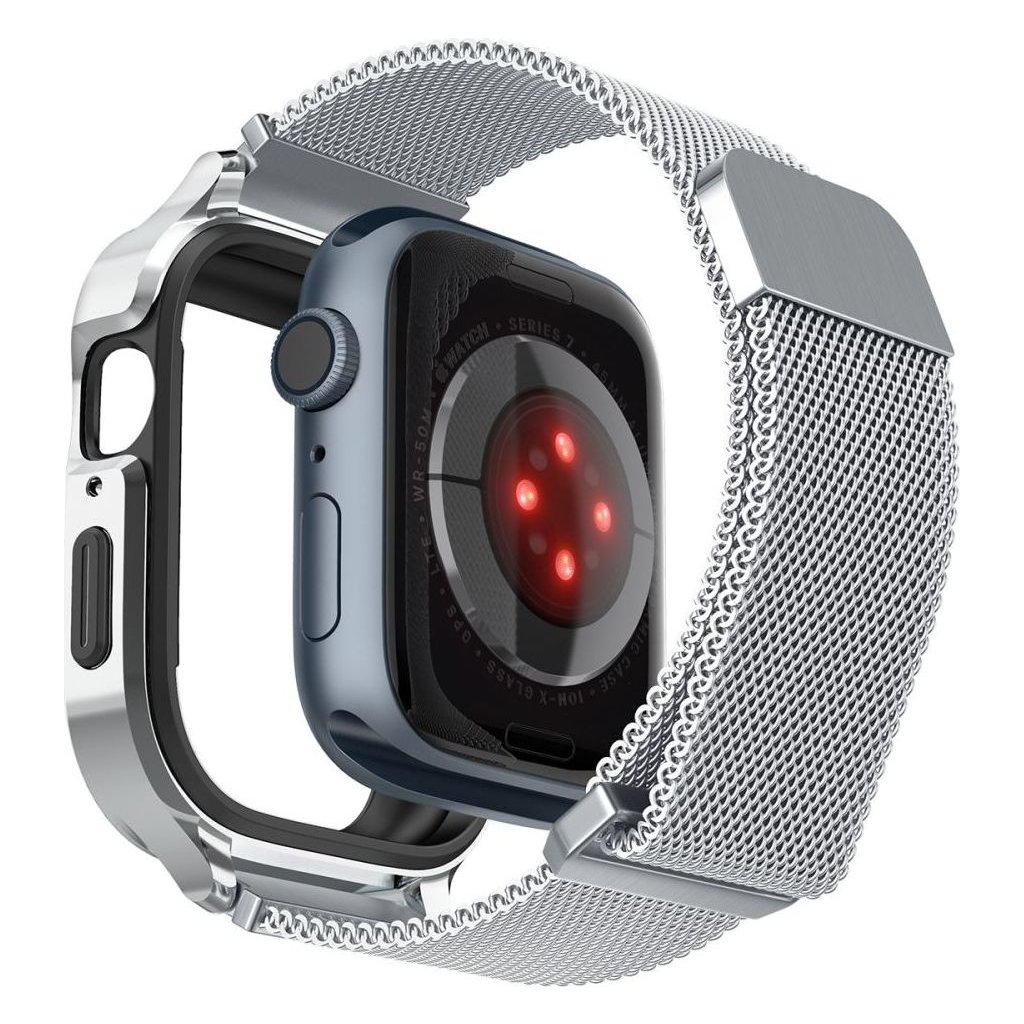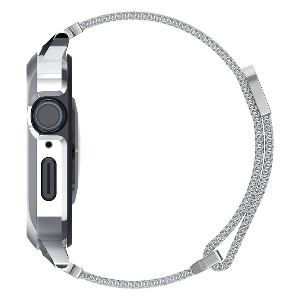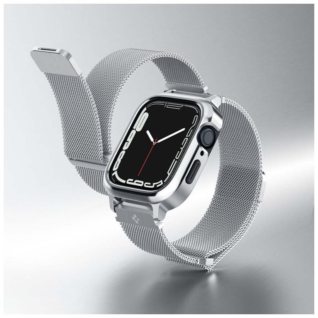 Řemínek s krytem pro Apple Watch 44mm / 45mm - Spigen, Metal Fit Pro Silver