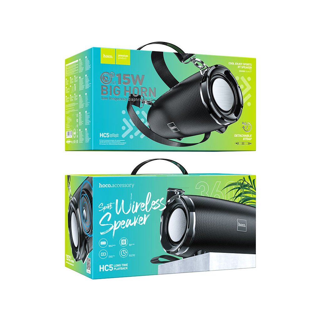 Bluetooth reproduktor Hoco HC5 nabízí mnoho způsobů, jak si kvalitně a nahlas pustit hudbu. Není to žádný prcek a nabídne opravdu mohutný zvuk. Přesto ho lze brát ven a šikovný popruh posloží pro lehčí transport.