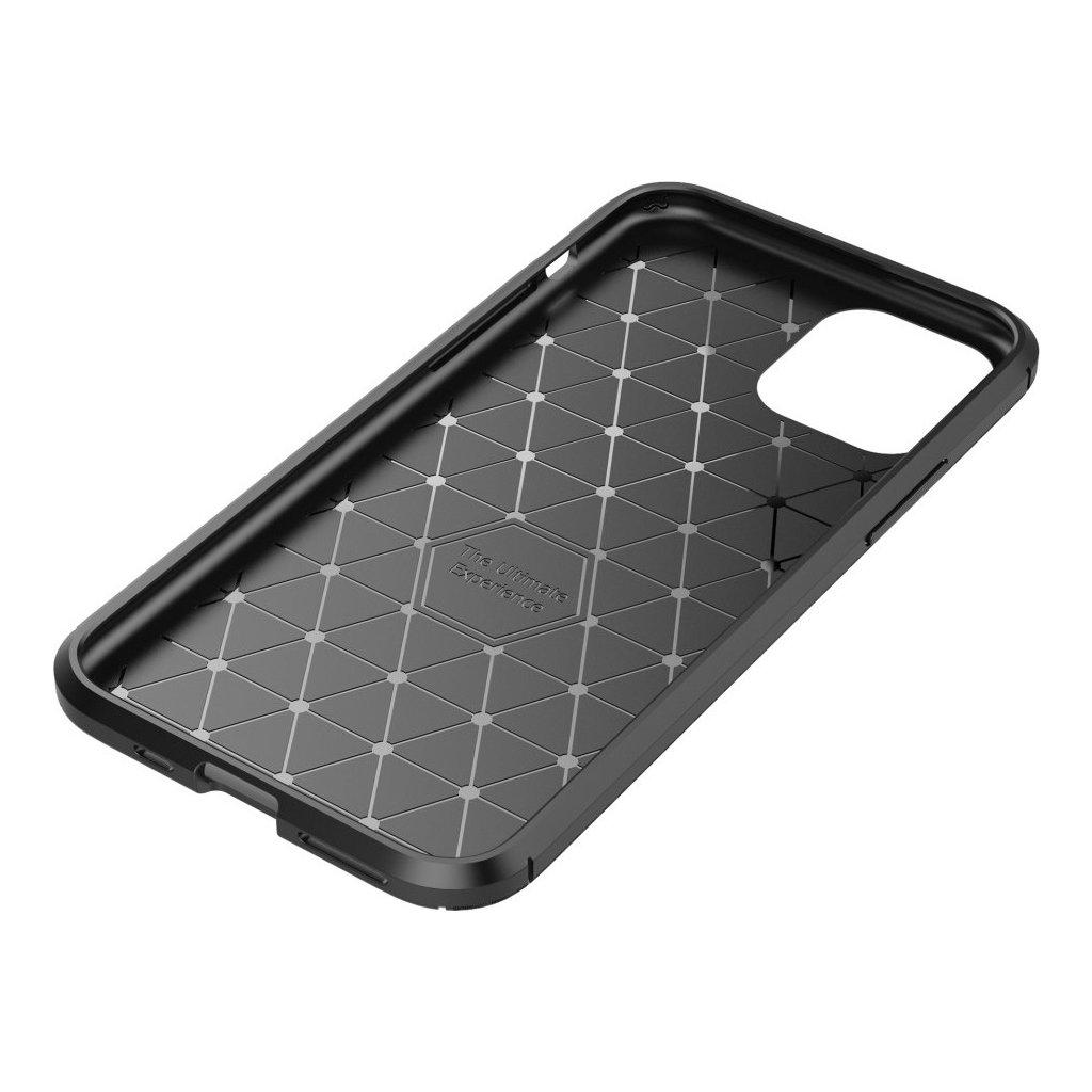 Ochranný kryt pro iPhone 11 Pro je velmi hezkým pouzdrem, které nese karbonovou texturu. Pouzdro je tenké a díky zdrsněnému povrchu na zádech se s ním telefon dobře drží.