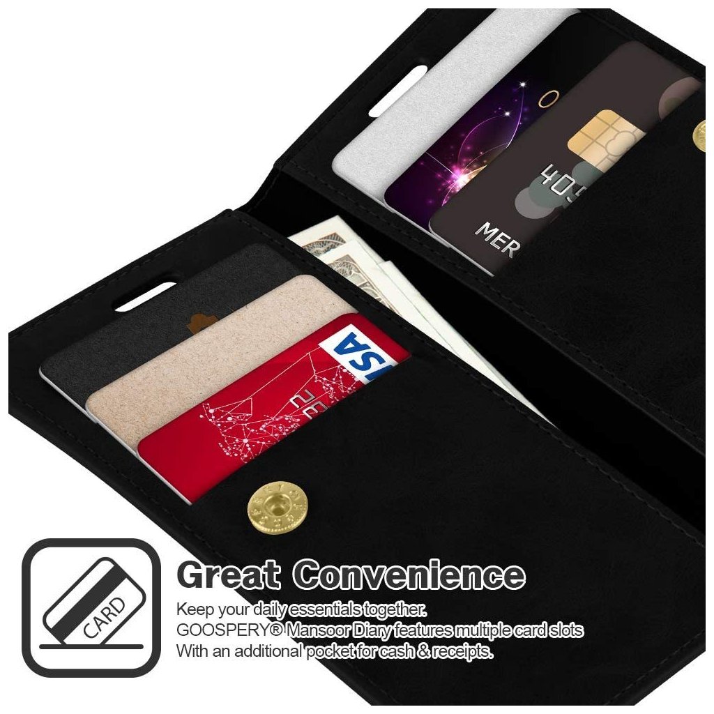 Ochranné pouzdro na iPhone Mercury Mansoor Diary je zavírací elegantní kryt pro Apple telefony. Příjemný obal plní kromě ochranné funkce také použití jako peněženky, protože má přihrádky pro uložení drobné hotovosti nebo platebních karet.