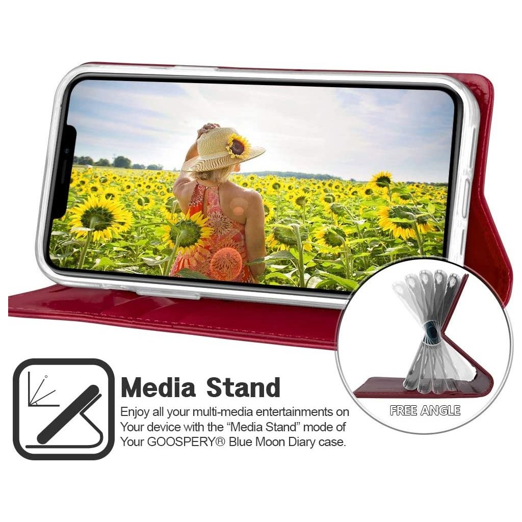 Ochranné pouzdro na iPhone Mercury Bluemoon Diary je zavírací elegantní kryt pro Apple telefony. Příjemný obal plní kromě ochranné funkce také použití jako stojánku nebo přihrádky pro uložení drobné hotovosti.