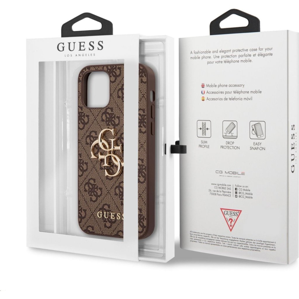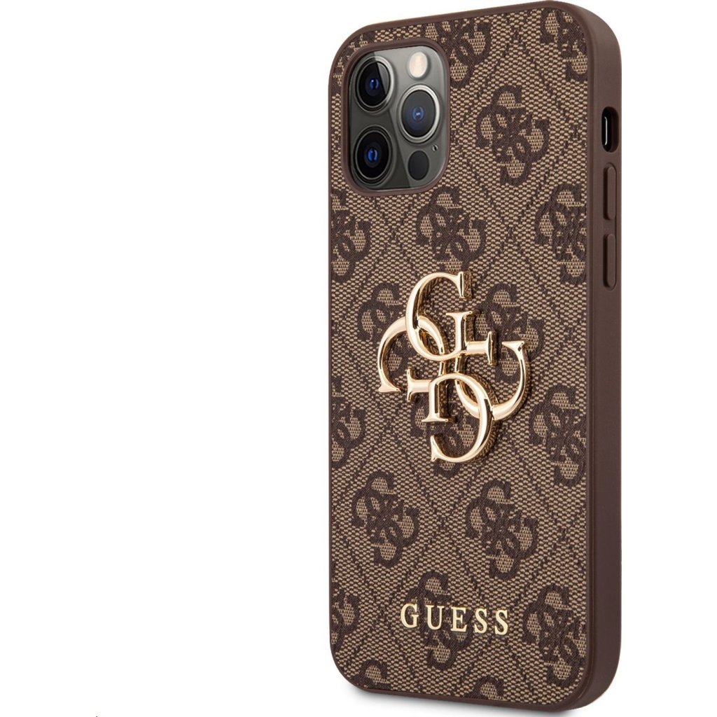 Ochranný kryt pro iPhone 12 / 12 Pro - Guess, 4G Logo Back Brown