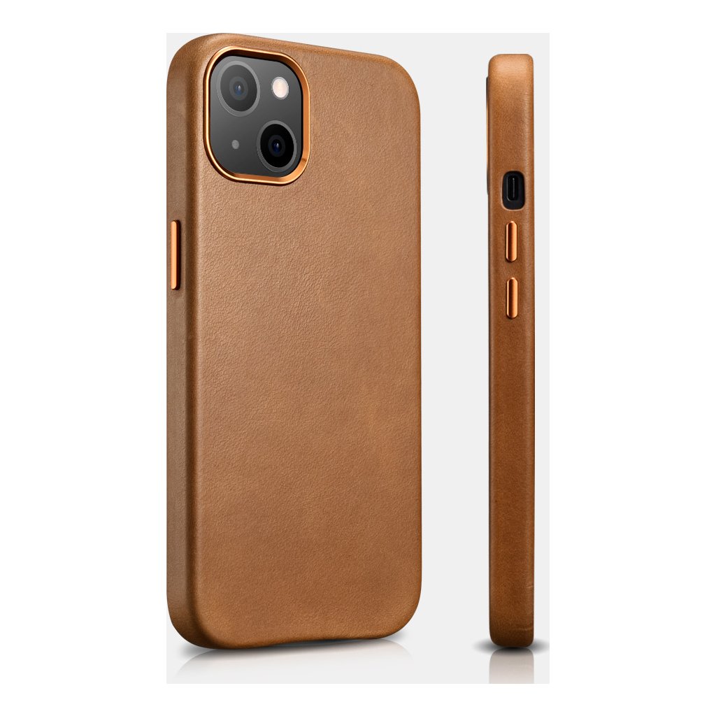 Kožený kryt na iPhone 13 mini - iCarer, Oil Wax with MagSafe Brown