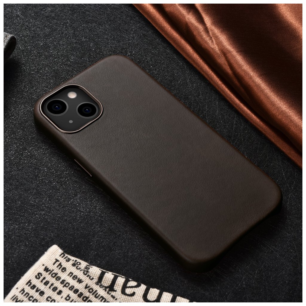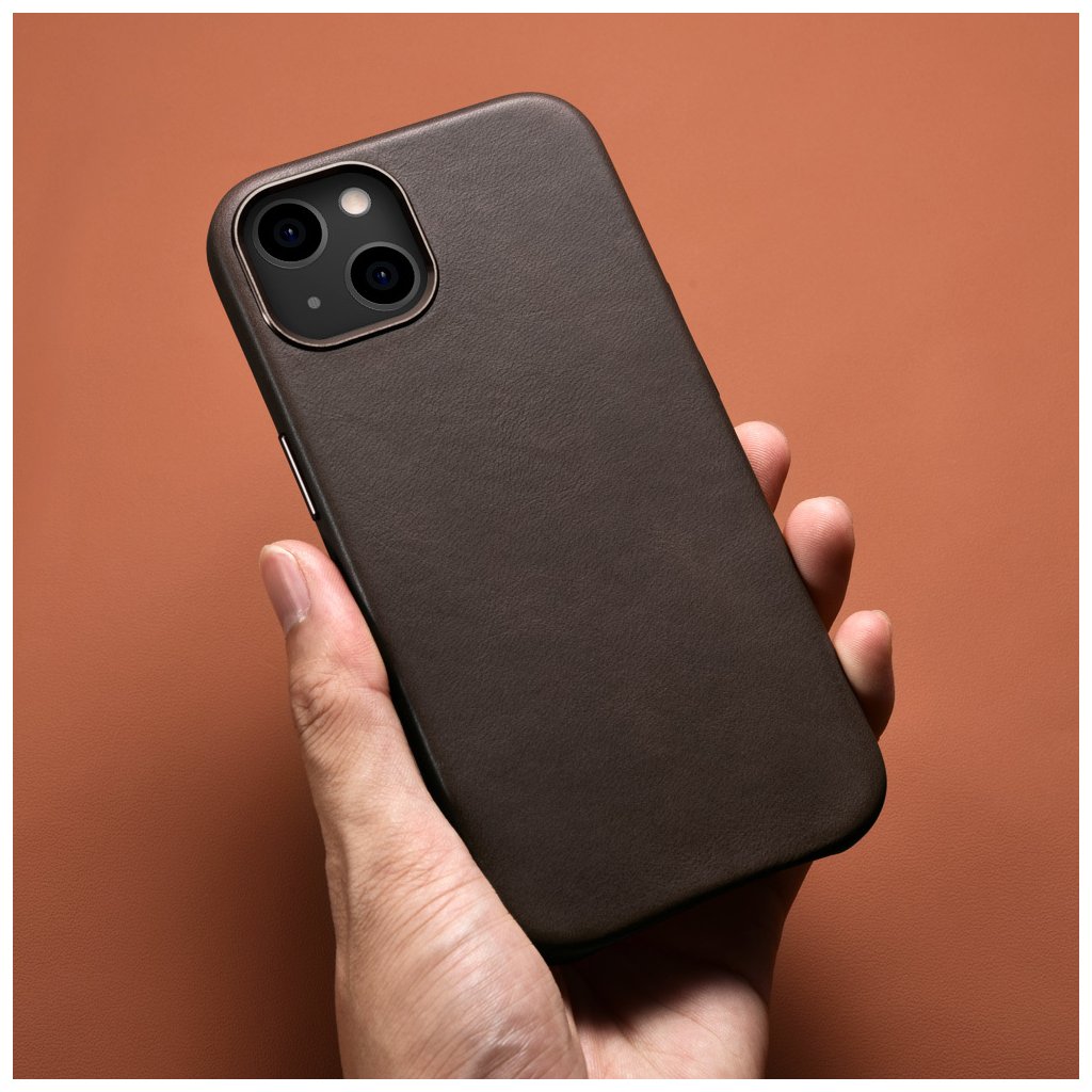 Kožený kryt na iPhone 13 mini - iCarer, Oil Wax with MagSafe Coffee