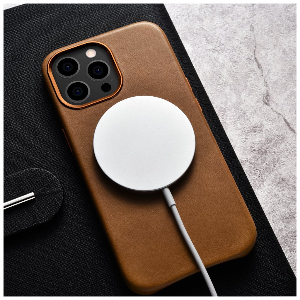 Kožený kryt na iPhone 13 Pro MAX - iCarer, Oil Wax with MagSafe Brown