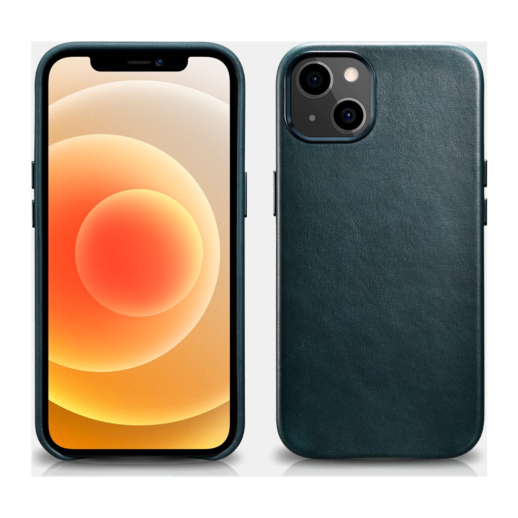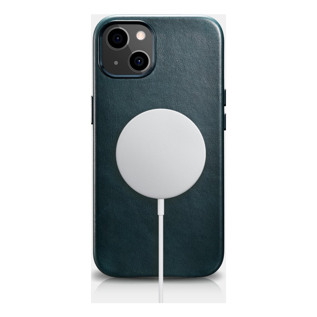Kožený kryt na iPhone 13 - iCarer, Oil Wax with MagSafe Blue