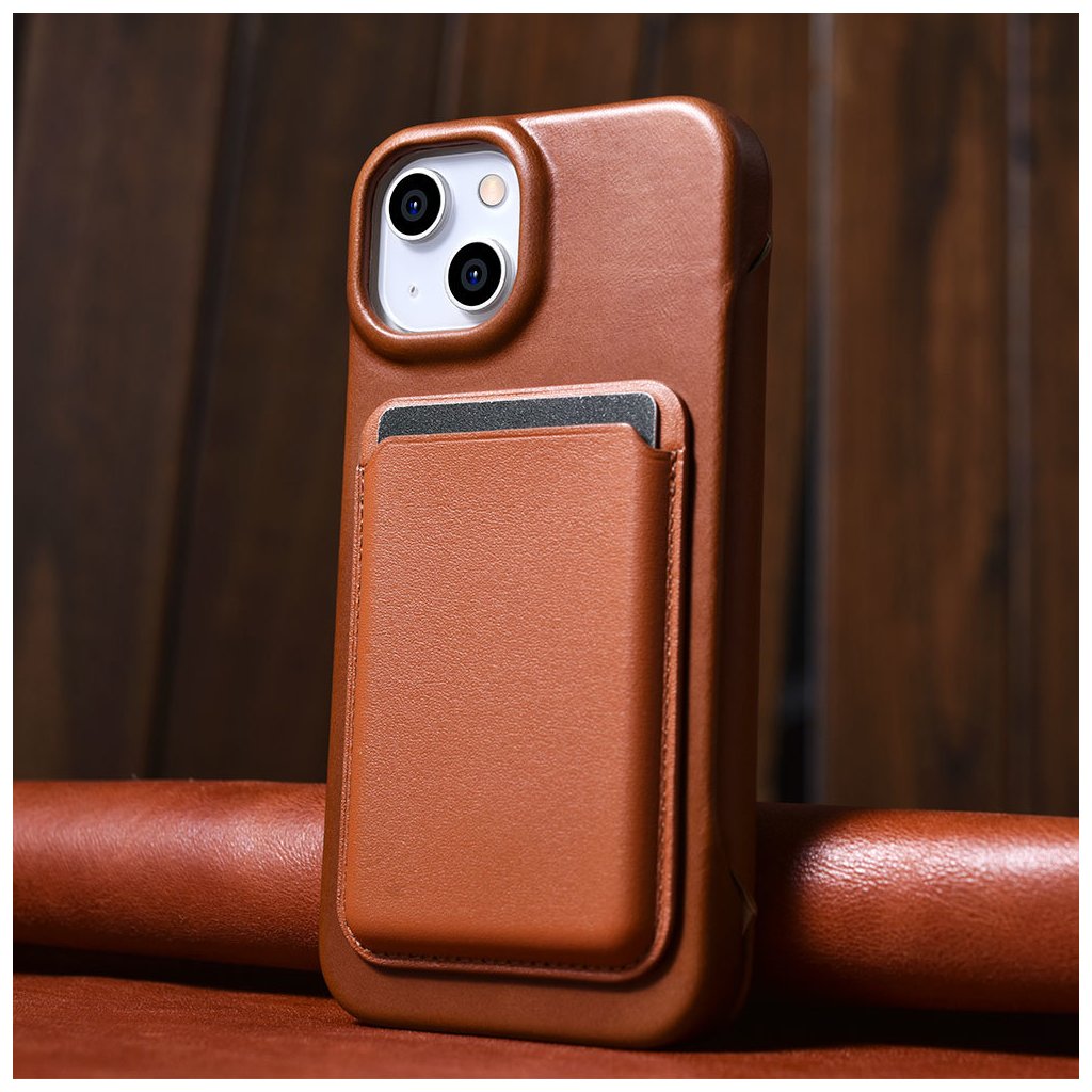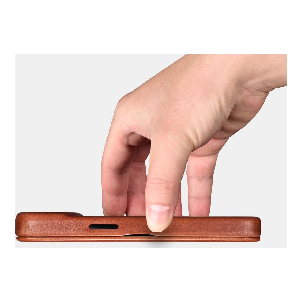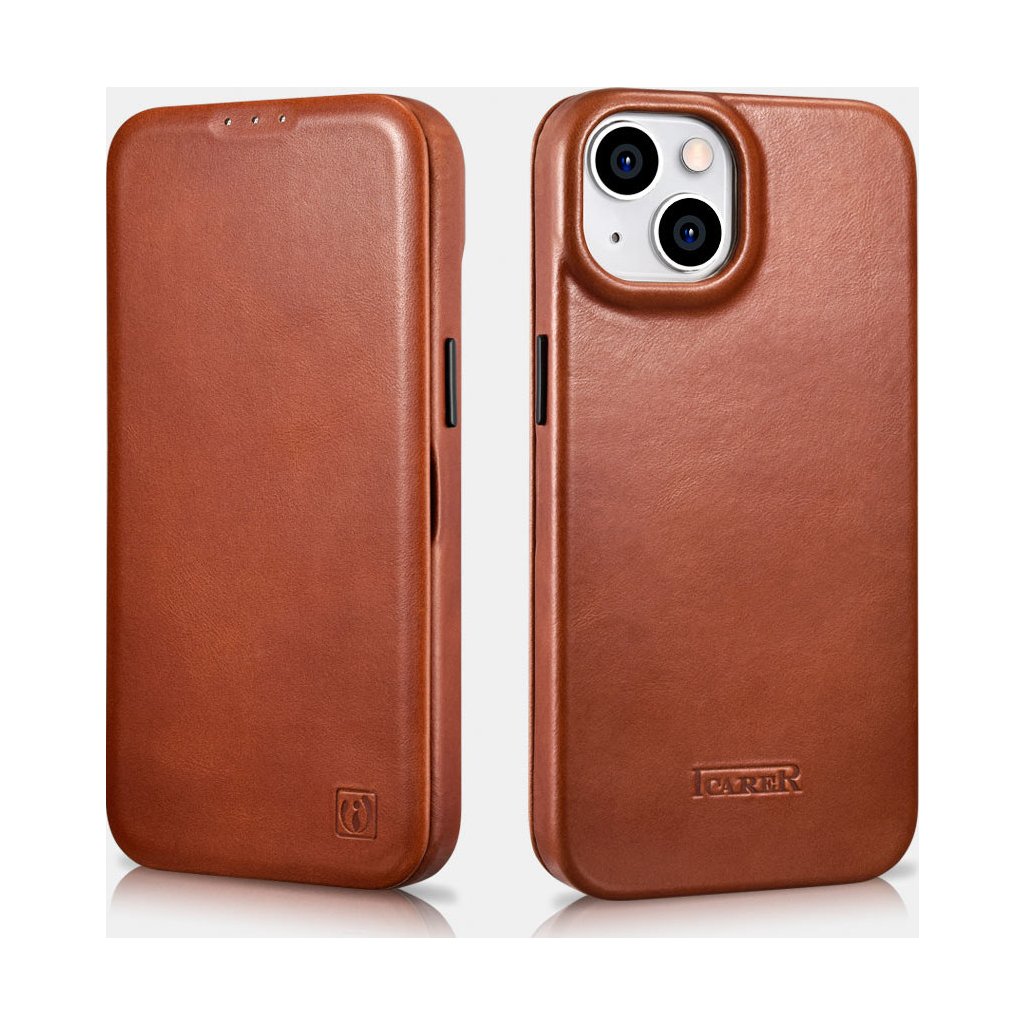 Knížkové pouzdro pro iPhone 14 PLUS - iCarer, Curved Edge MagSafe Brown