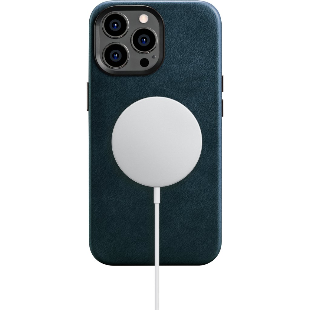 Kožený obal na iPhone 14 Pro MAX - iCarer, OilWax MagSafe Blue