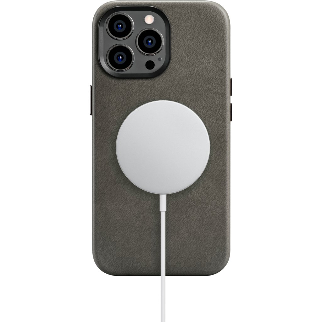 Kožený obal na iPhone 14 Pro MAX - iCarer, OilWax MagSafe Gray