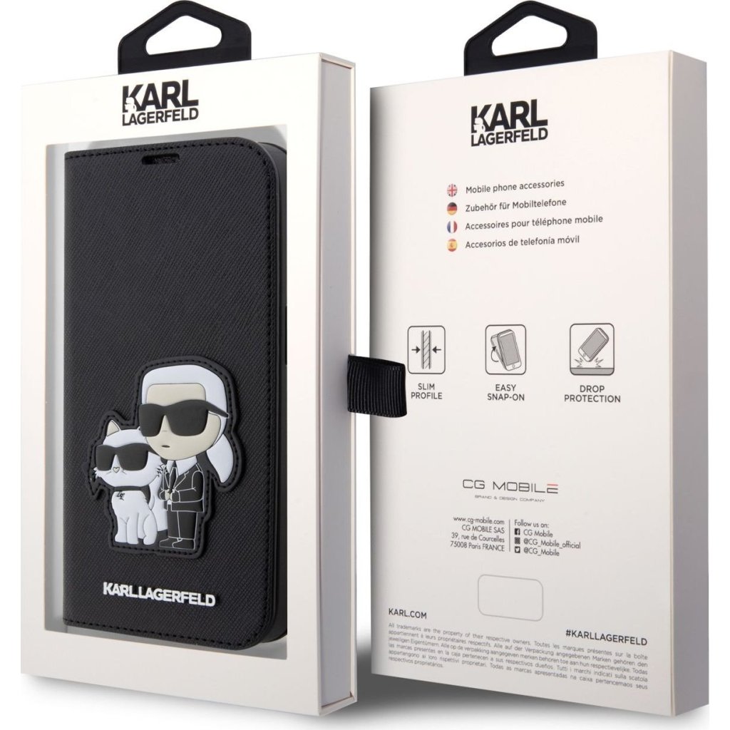 Ochranné pouzdro pro iPhone 14 Pro MAX - Karl Lagerfeld, Saffiano Karl and Choupette NFT Book Black