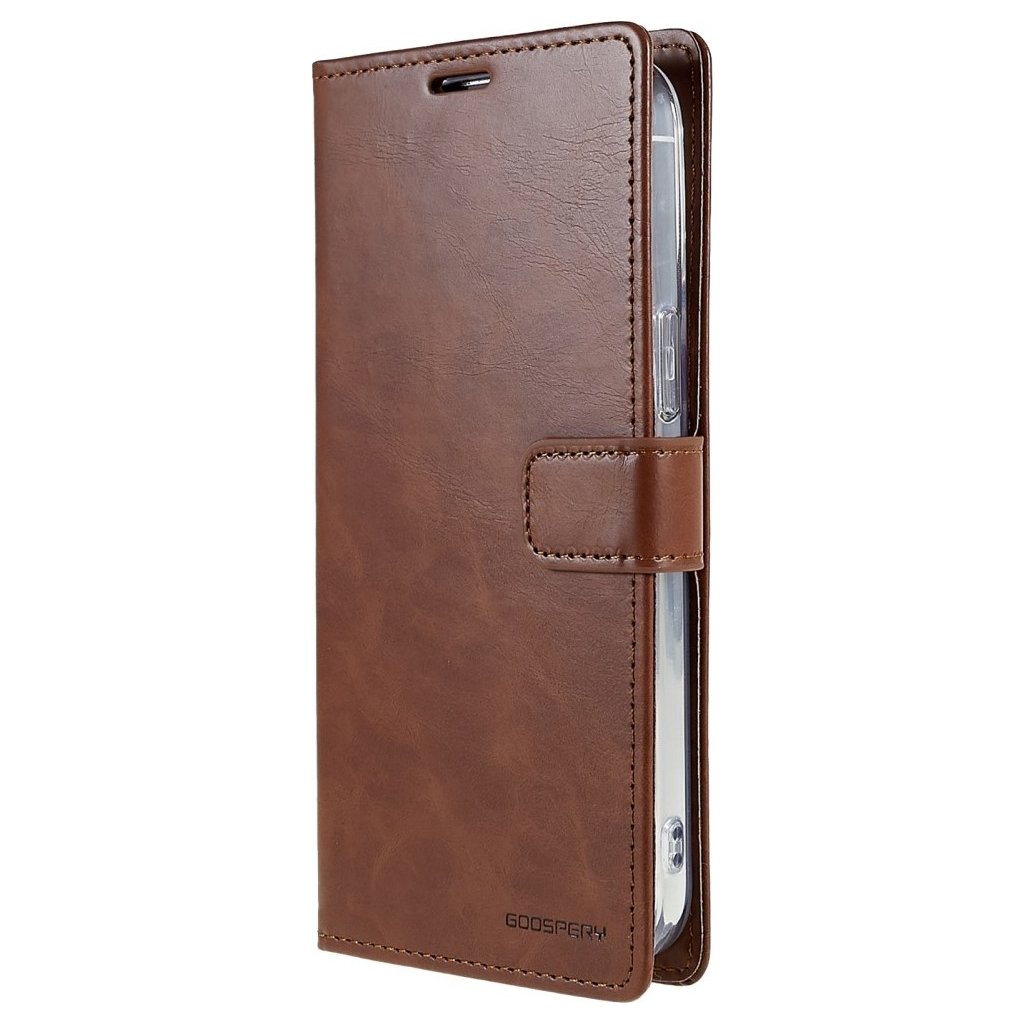Ochranné pouzdro na iPhone Mercury Bluemoon Diary je zavírací elegantní kryt pro Apple telefony. Příjemný obal plní kromě ochranné funkce také použití jako stojánku nebo přihrádky pro uložení drobné hotovosti.