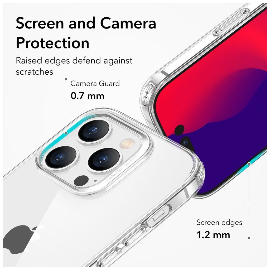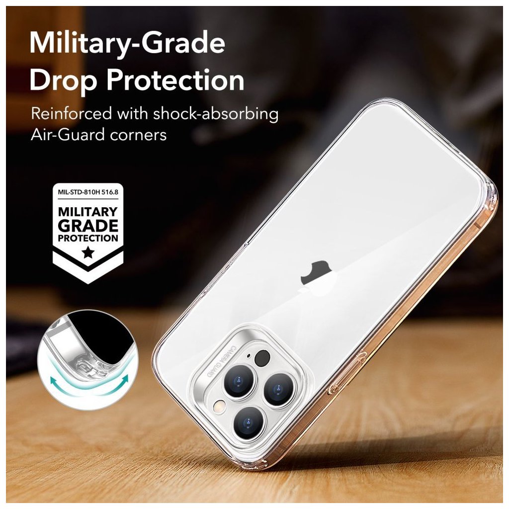Pouzdro na iPhone ochrání zadní část telefonu. Průhledné pouzdro na iPhone je odolné a bude také tlumit případné nárazy při pádech. To ostatně dokládá vojenská norma MIL-STD-810H 516.8. Ta deklaruje, že telefon po pádu v pouzdru vydrží více než v obyčejném krytu. Přesto zůstává kryt velmi tenký a lehký, takže nemáte pocit, že by telefon zbytečně zvětšoval.