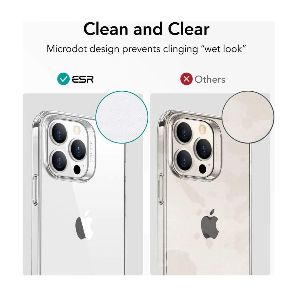 Ochranný kryt pro iPhone ESR Project Zero Clear je průhledným pouzdrem, které telefon udrží v bezpečí. Obal na iPhone poskytuje ochranu a také transparentní design. Povrch je pokryt vrstvou, která zabraňuje žloutnutí a zevnitř obsahuje malé tečky, které nebudou tvořit ošklivé mapy.