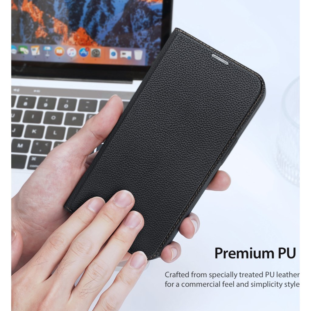Knížkové pouzdro pro iPhone DuxDucis SkinX2 je oboustranný obal z prémiové syntetické kůže. Ta dokáže přesně imitovat pravou kůži, lépe odolává tekutině a není tak náročná na údržbu. Pouzdro poslouží také jako nastavitelný stojánek nebo úložiště pro až 2 platební karty, případně drobnou hotovost.