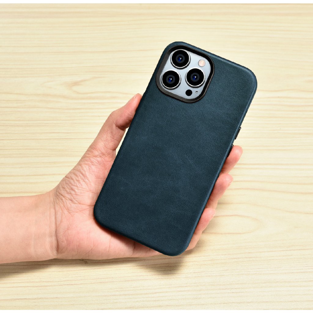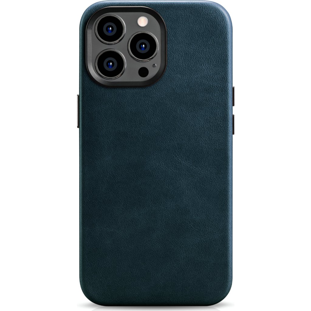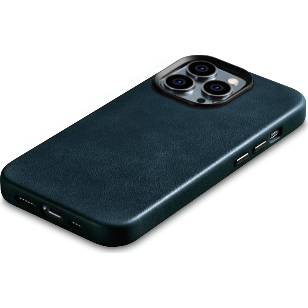 Kožený obal na iPhone 14 Pro - iCarer, OilWax MagSafe Blue