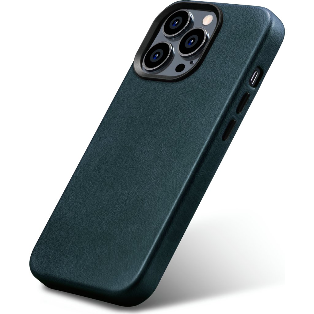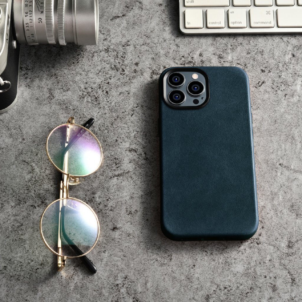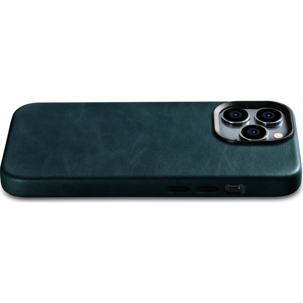 Kožený obal na iPhone 14 Pro - iCarer, OilWax MagSafe Blue