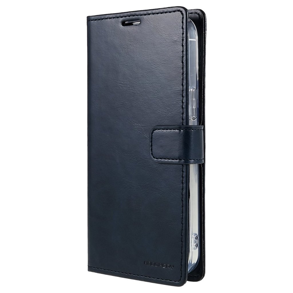Ochranné pouzdro na iPhone Mercury Bluemoon Diary je zavírací elegantní kryt pro Apple telefony. Příjemný obal plní kromě ochranné funkce také použití jako stojánku nebo přihrádky pro uložení drobné hotovosti.