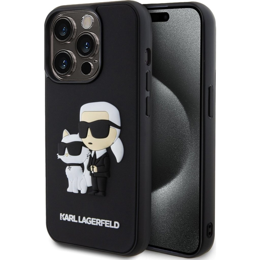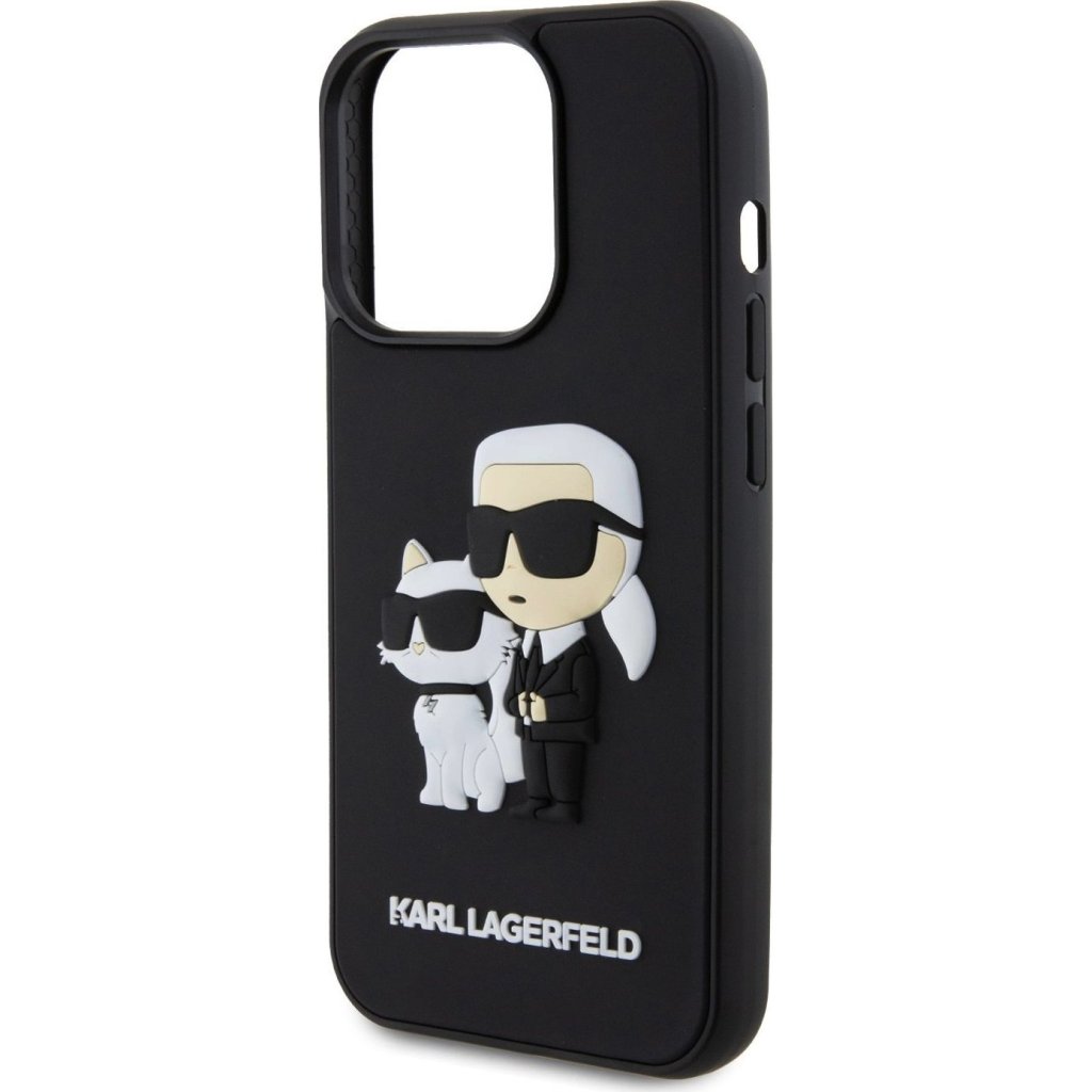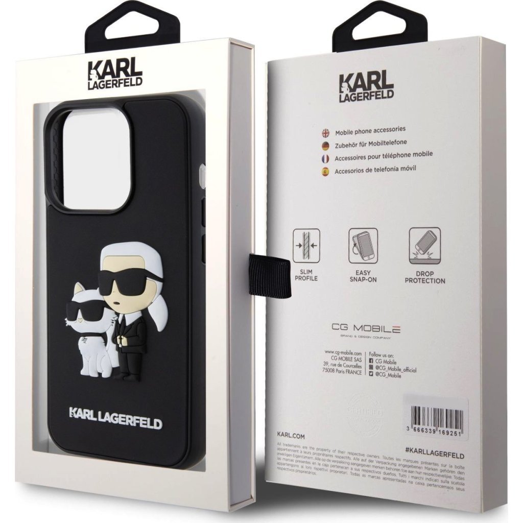 Ochranný kryt na iPhone 14 Pro - Karl Lagerfeld, 3D Rubber Karl and Choupette Black