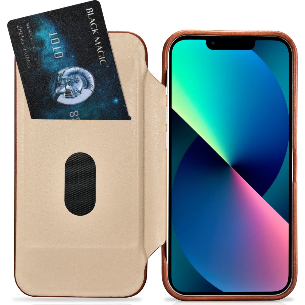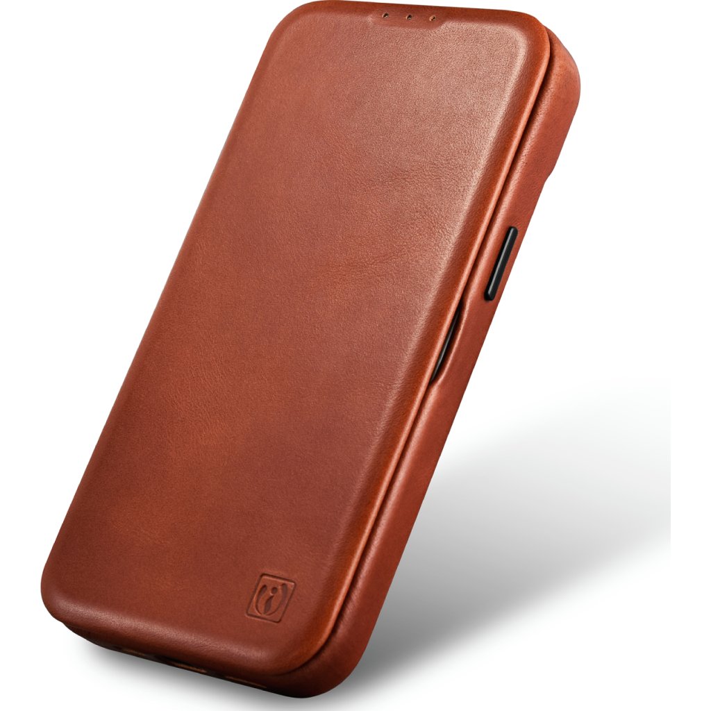 Knížkové pouzdro pro iPhone 14 - iCarer, Curved Edge MagSafe Brown