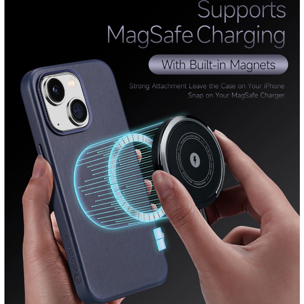 Kožený kryt na iPhone 14 - DuxDucis, Naples with MagSafe Blue