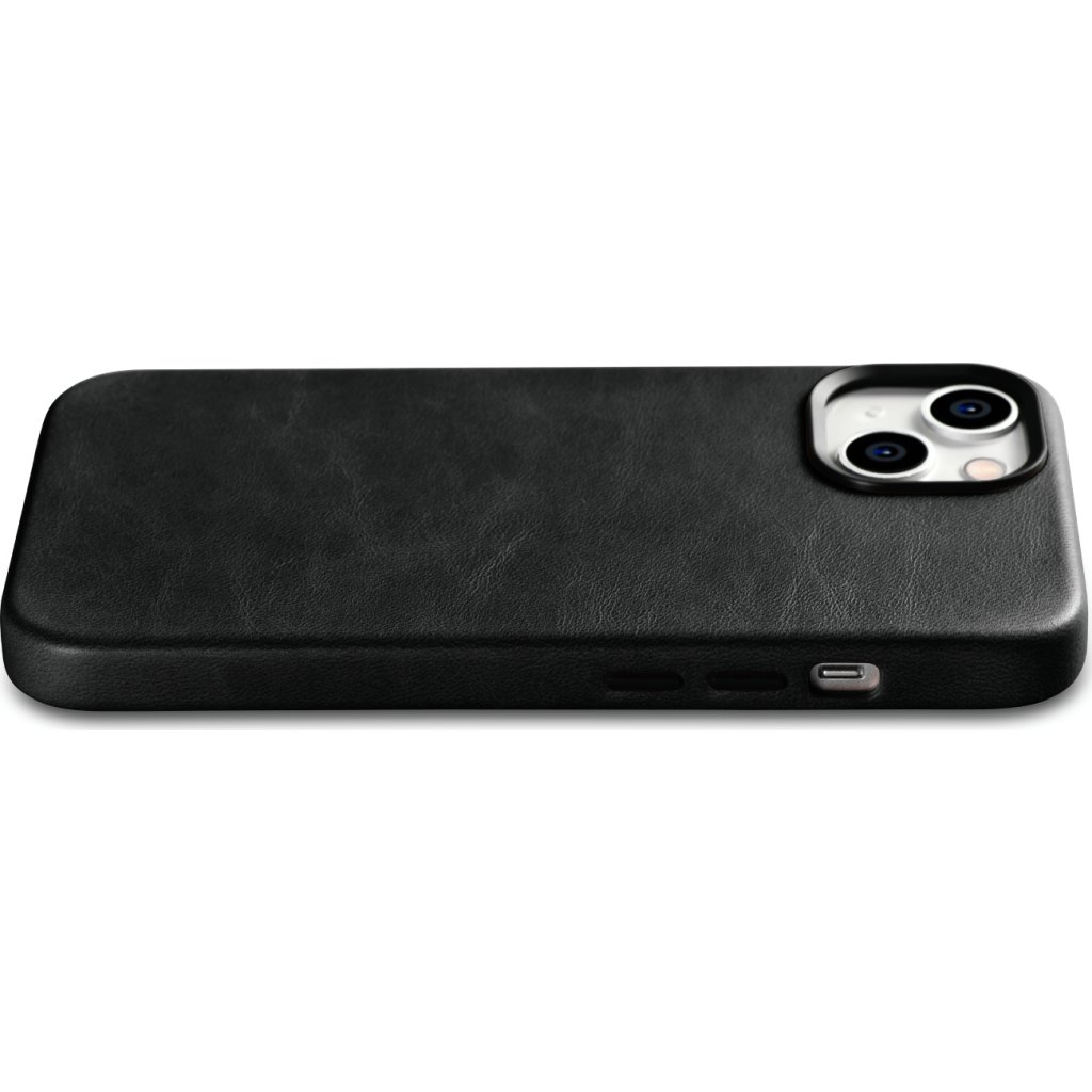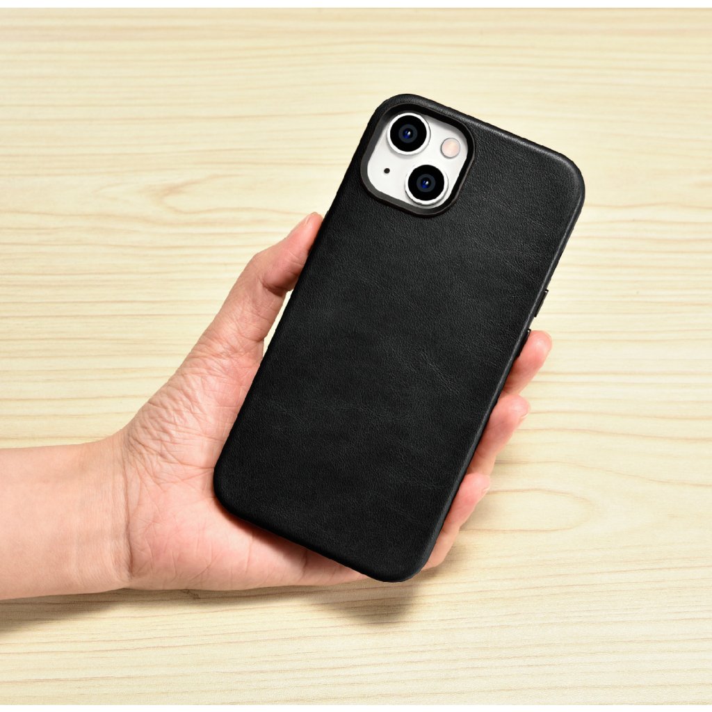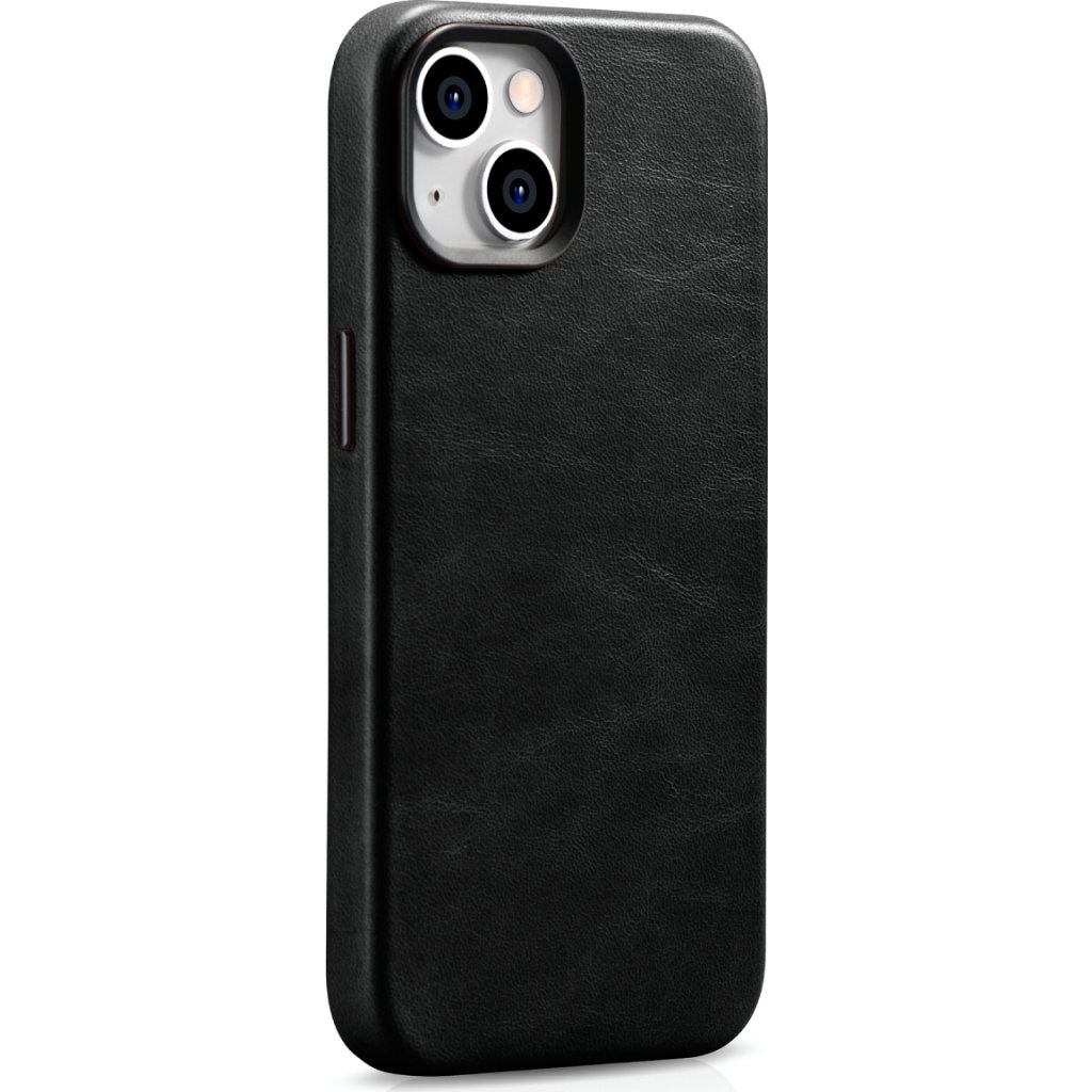 Kožený obal na iPhone 14 - iCarer, OilWax MagSafe Black