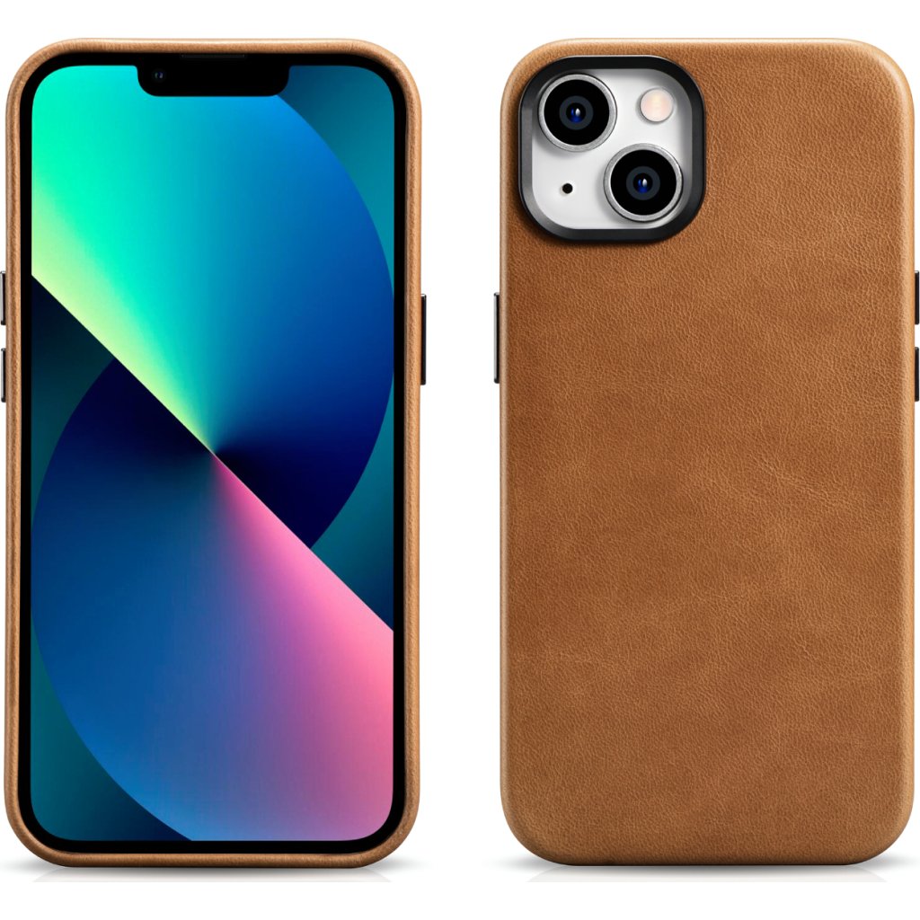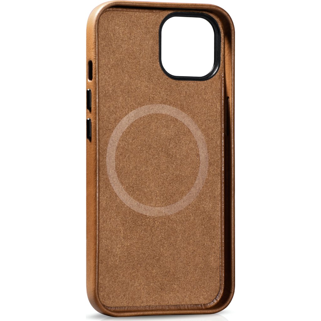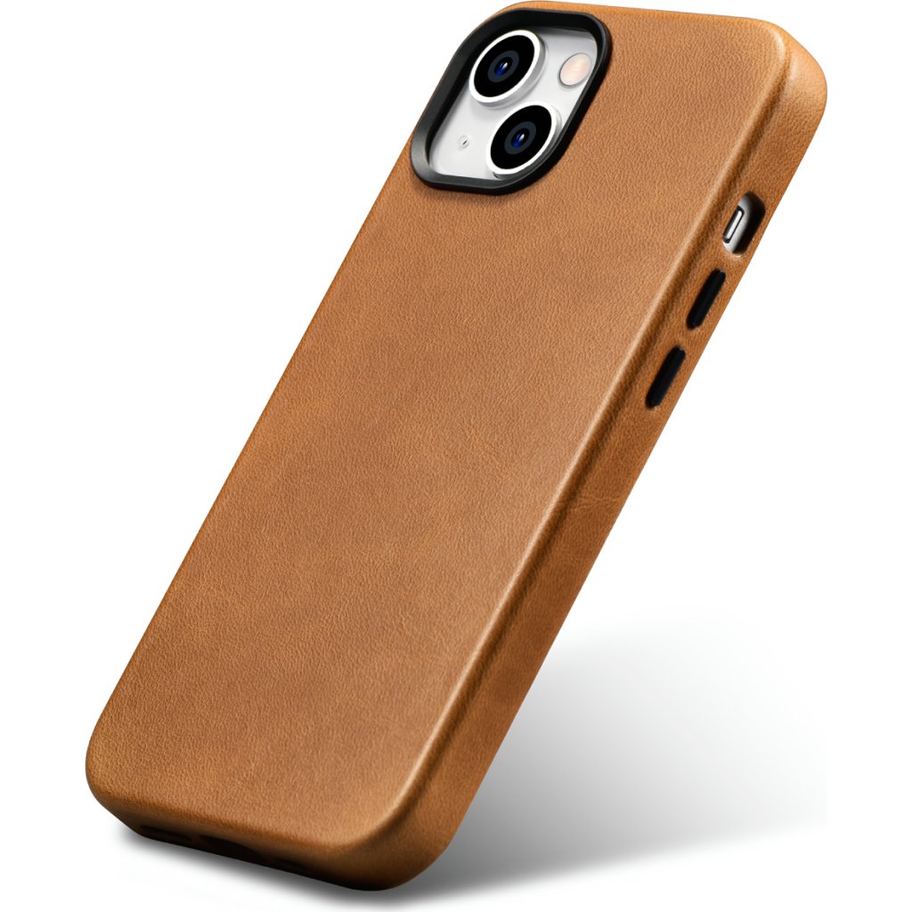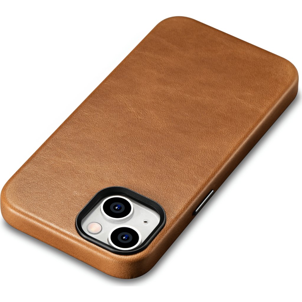 Kožený obal na iPhone 14 - iCarer, OilWax MagSafe Camel