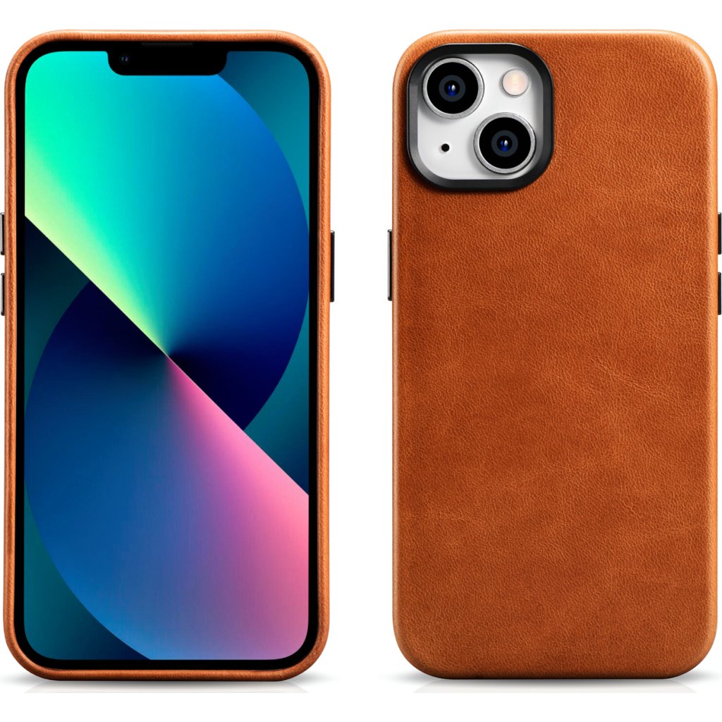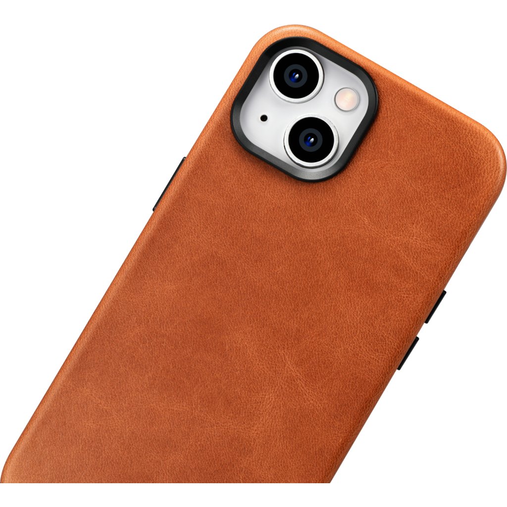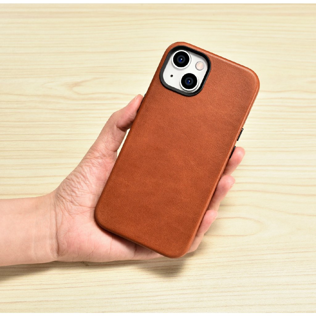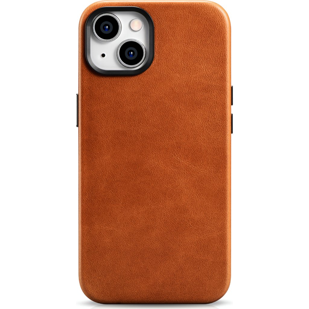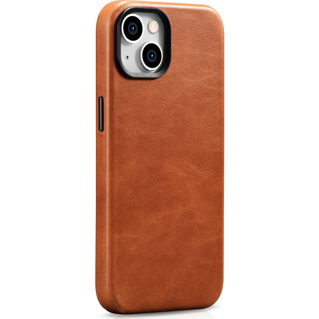 Kožený obal na iPhone 14 - iCarer, OilWax MagSafe Retro