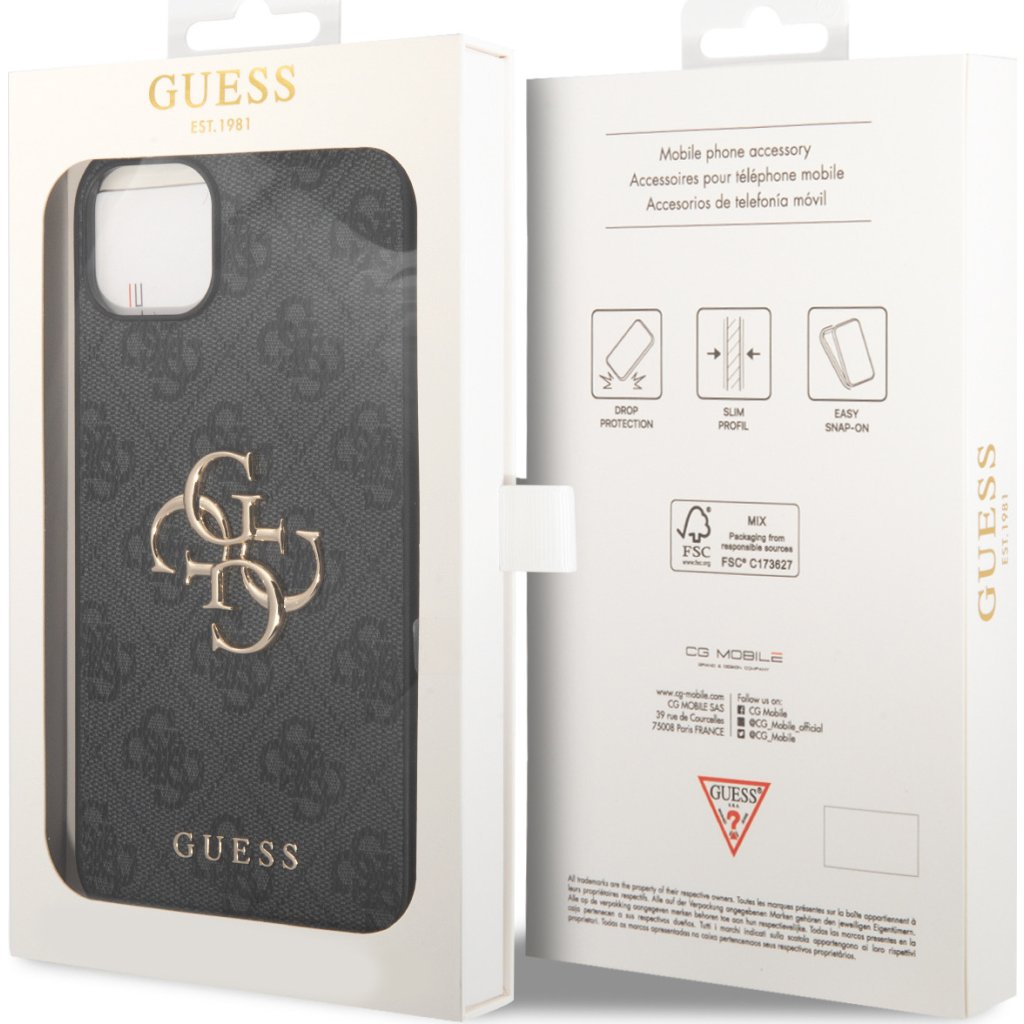 Ochranný kryt na iPhone 15 PLUS - Guess, 4G Metal Logo Gray