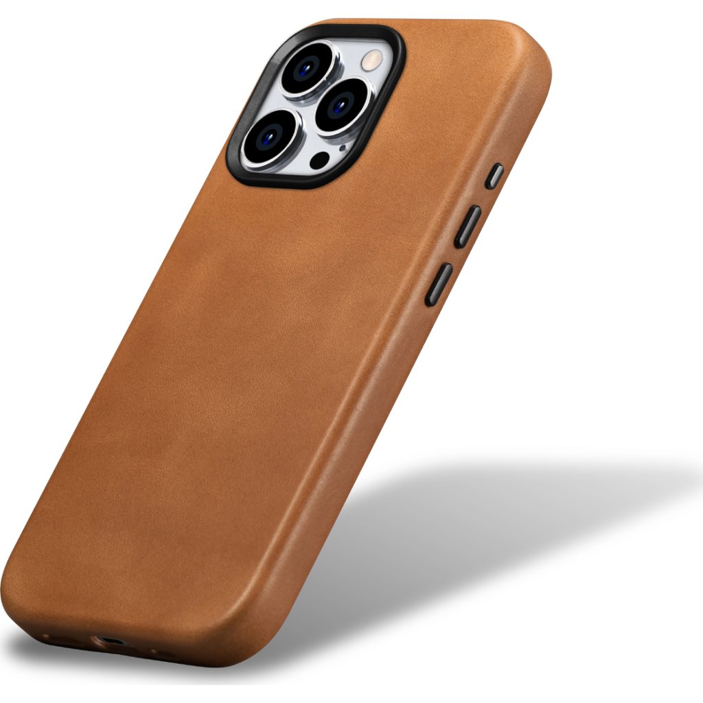Kožený obal na iPhone 15 Pro MAX - iCarer, OilWax MagSafe Camel