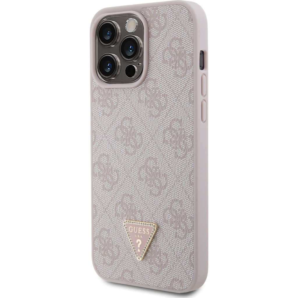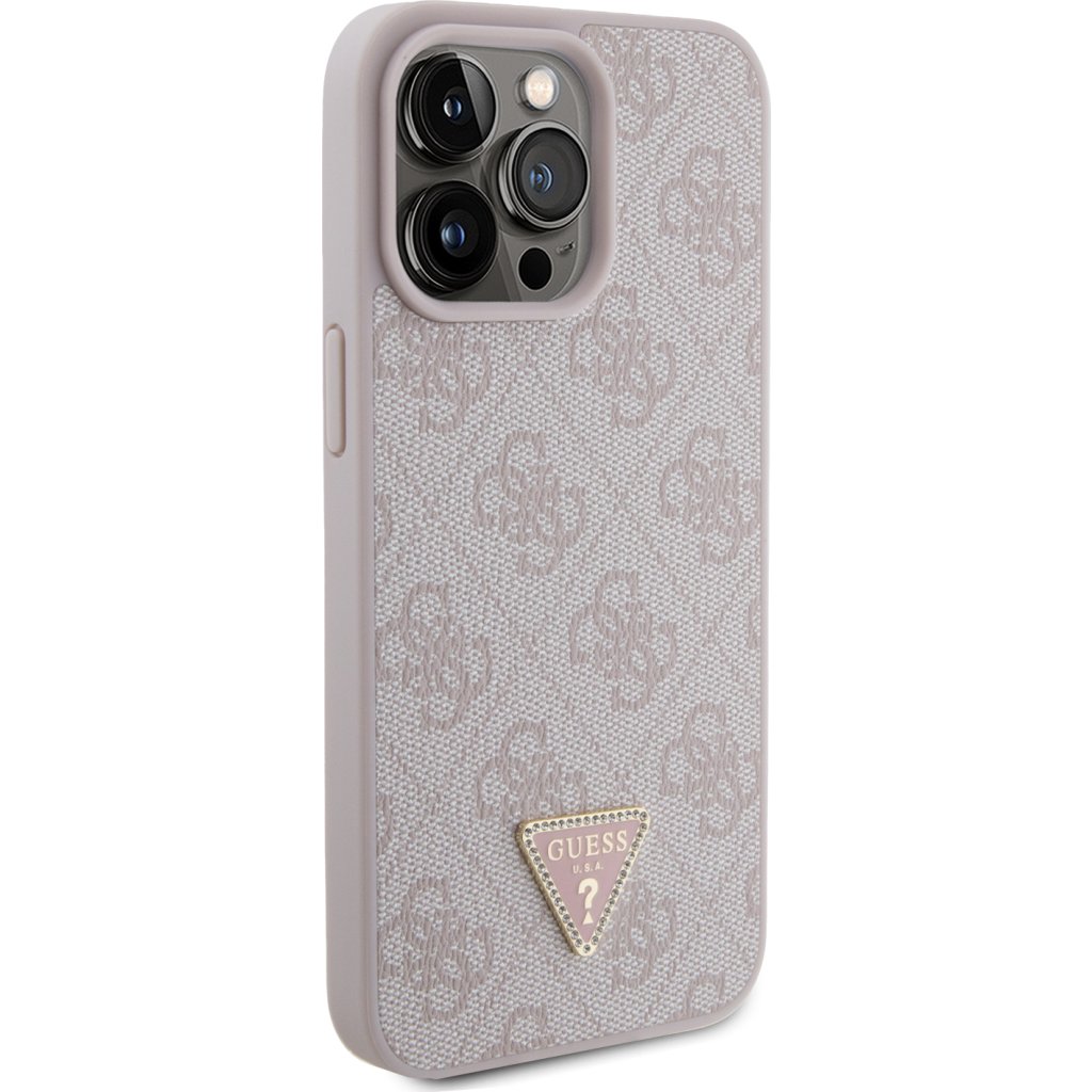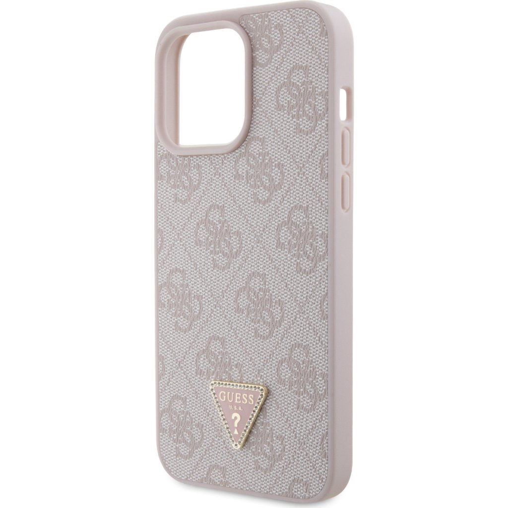 Ochranný kryt na iPhone 15 Pro MAX - Guess, 4G Strass Triangle Metal Logo Pink