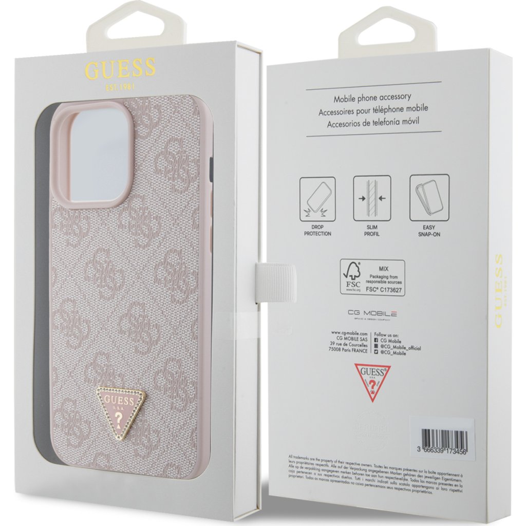 Guess PU 4G Strass Triangle Metal Logo kryt nejen chrání váš telefon, ale také je skvělým doplňkem vašeho outfitu.