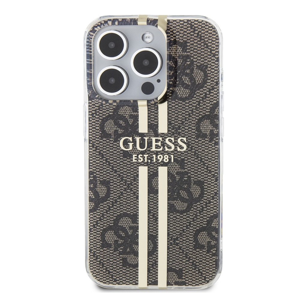 Ochranný kryt na iPhone 15 Pro MAX - Guess, IML 4G Gold Stripe Brown