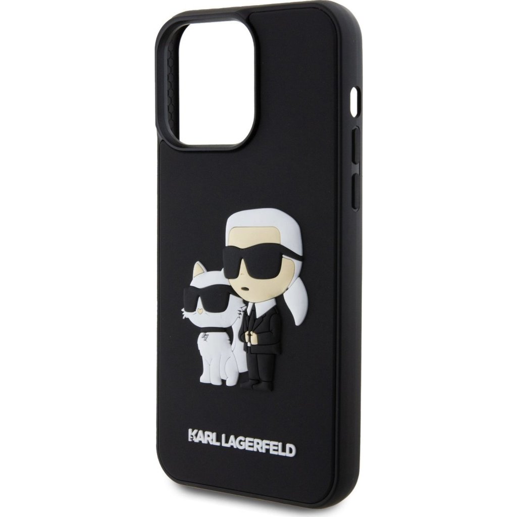 Ochranný kryt na iPhone 15 Pro MAX - Karl Lagerfeld, 3D Rubber Karl and Choupette Black