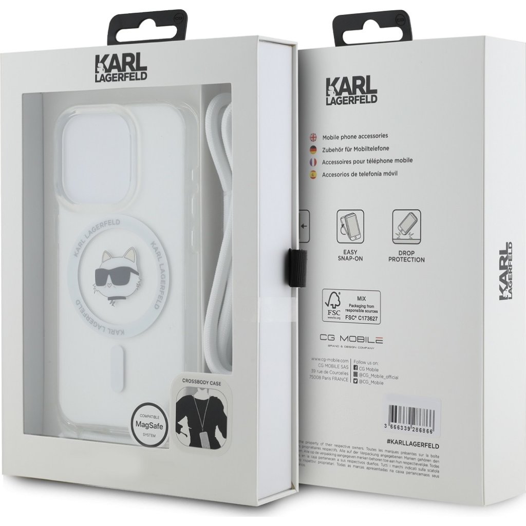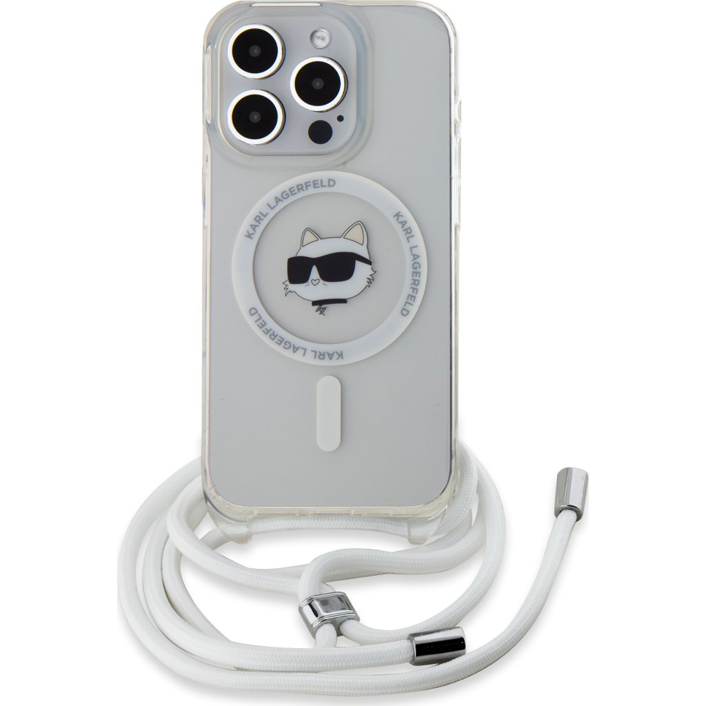 Ochranný kryt na iPhone 15 Pro MAX - Karl Lagerfeld, IML Crossbody Choupette Head Magsafe Transparent