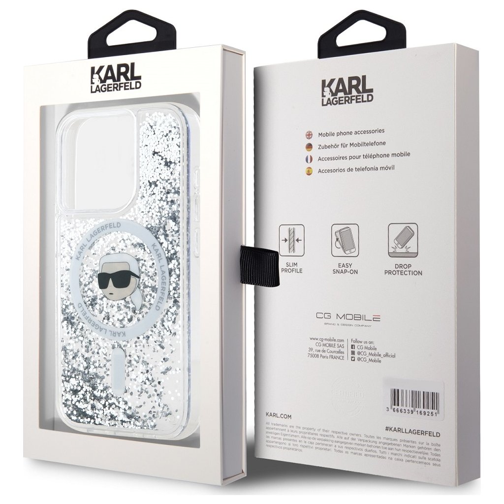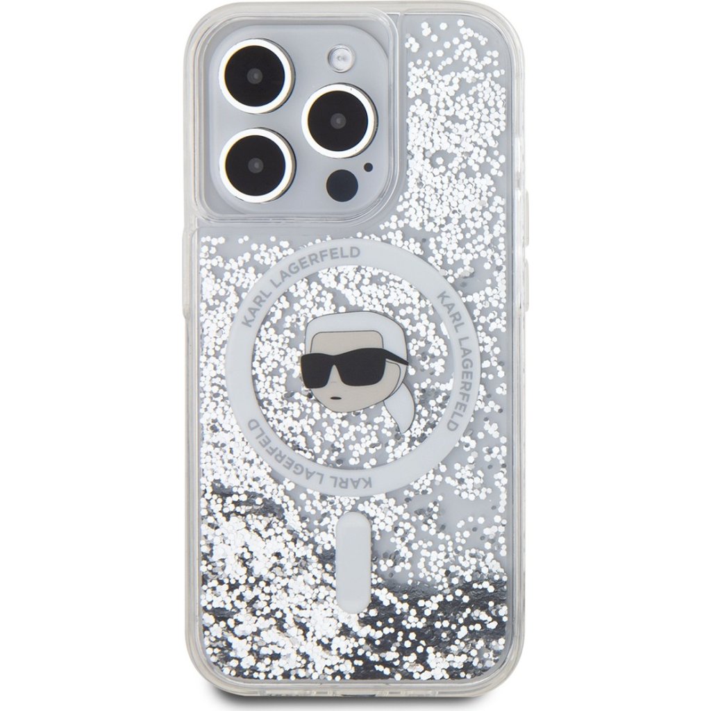 Ochranný kryt na iPhone 15 Pro MAX - Karl Lagerfeld, Liquid Glitter Karl Head MagSafe Transparent