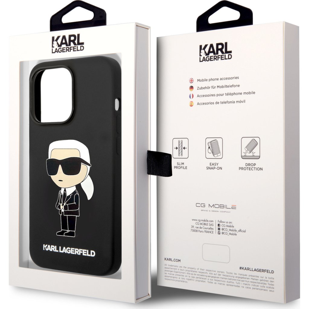 Ochranný kryt na iPhone 15 Pro MAX - Karl Lagerfeld, Liquid Silicone Ikonik NFT Black