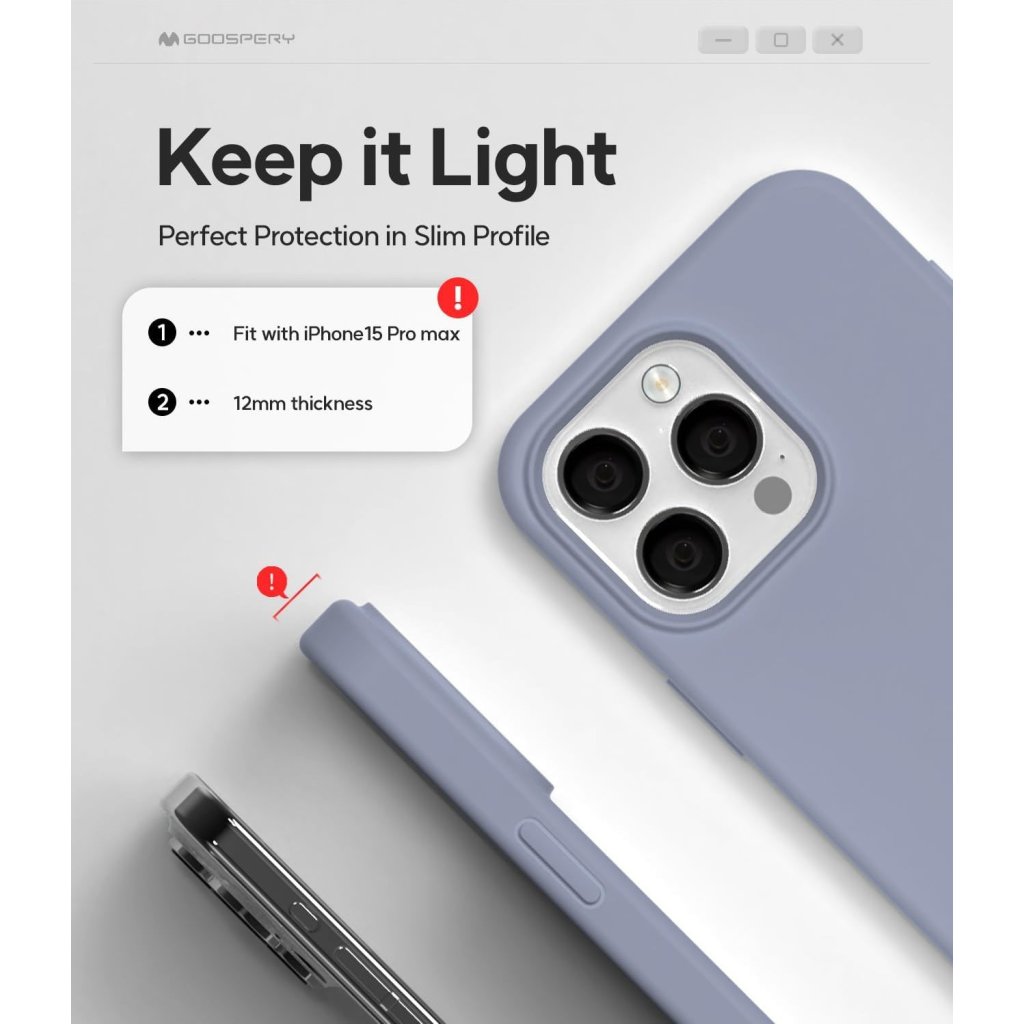 Ochranný kryt pro iPhone 15 Pro MAX Mercury Silicone perfektně ochrání před škrábanci a menšími pády a zároveň poskytuje pohodlné ovládání zařízení.
