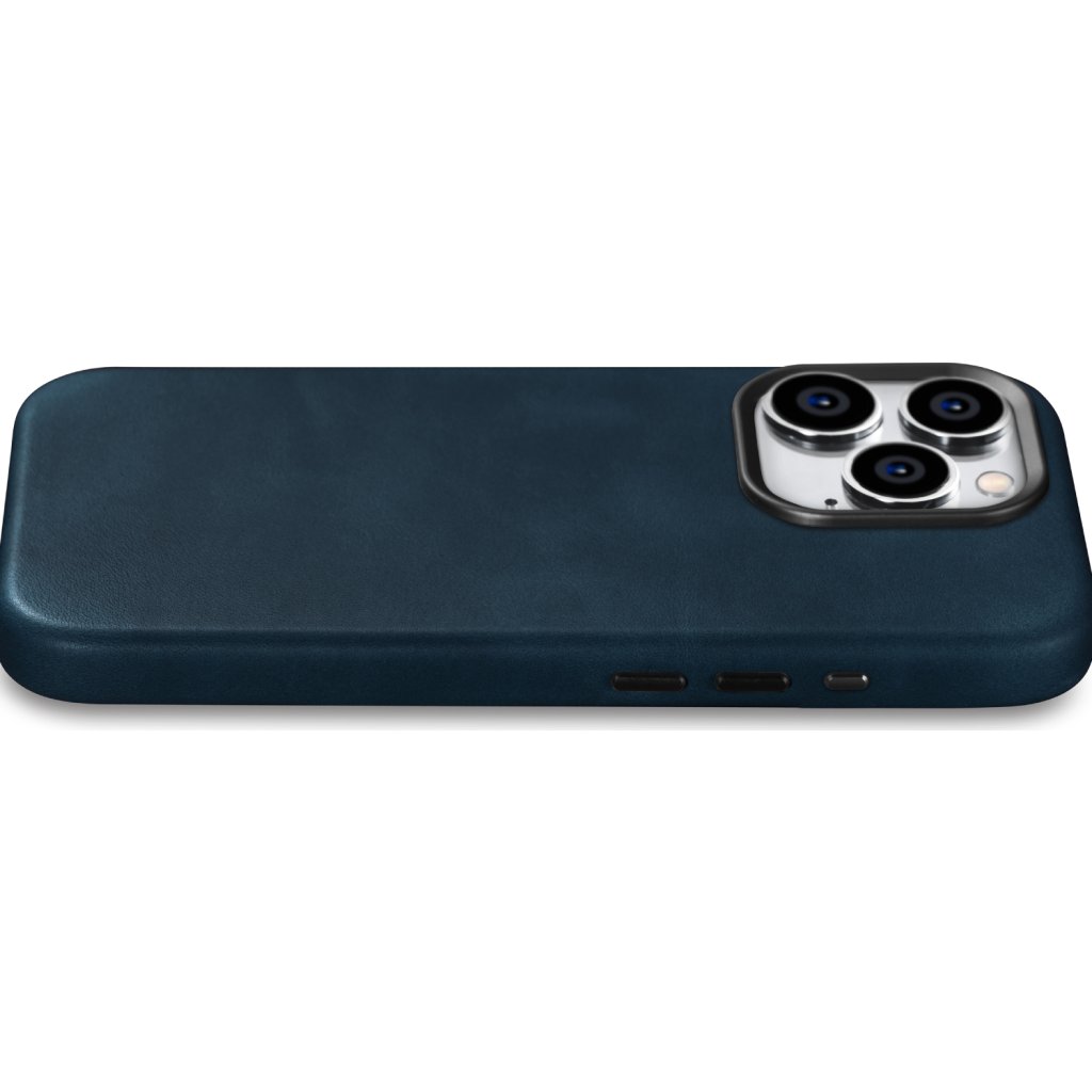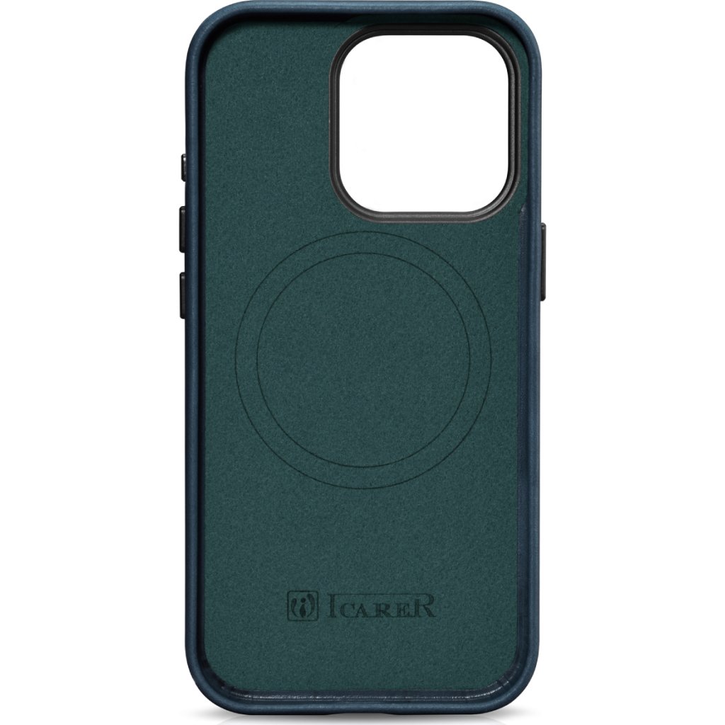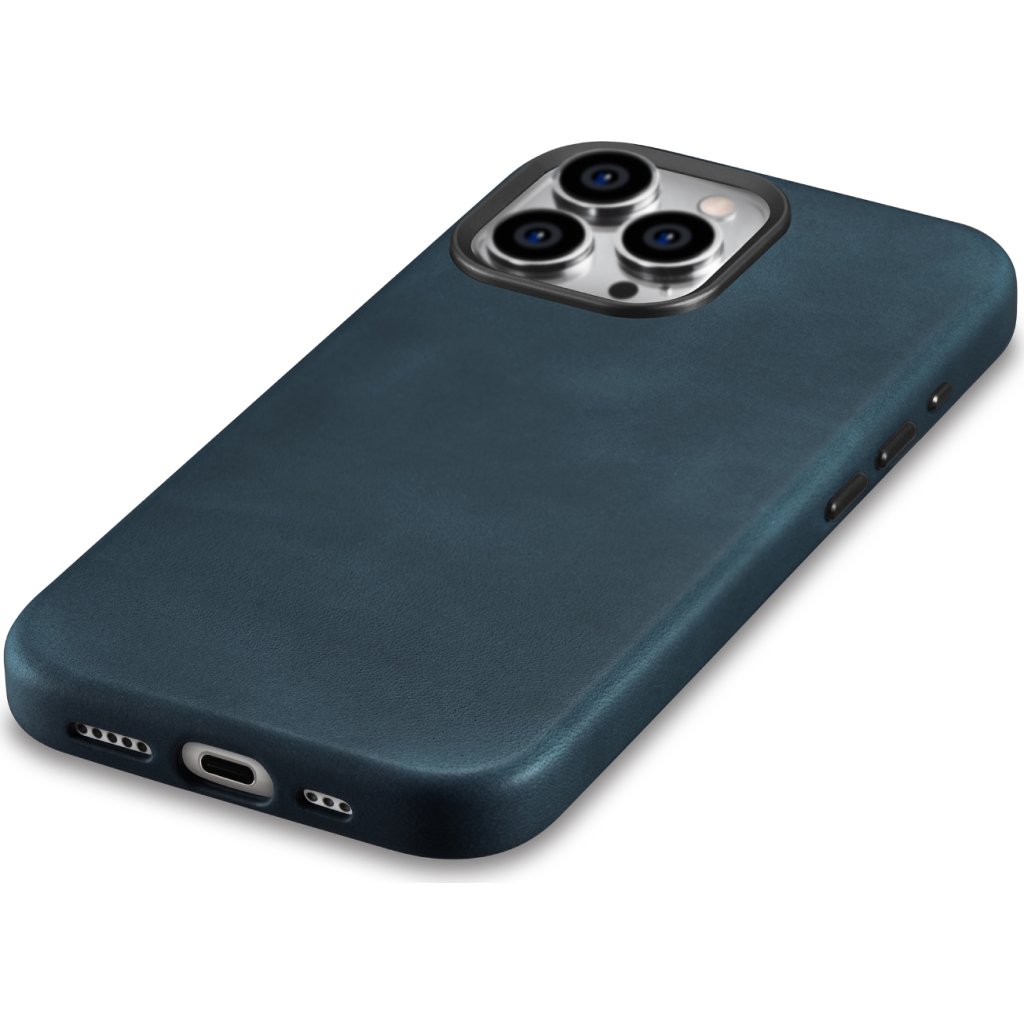 Kožený obal na iPhone 15 Pro - iCarer, OilWax MagSafe Blue